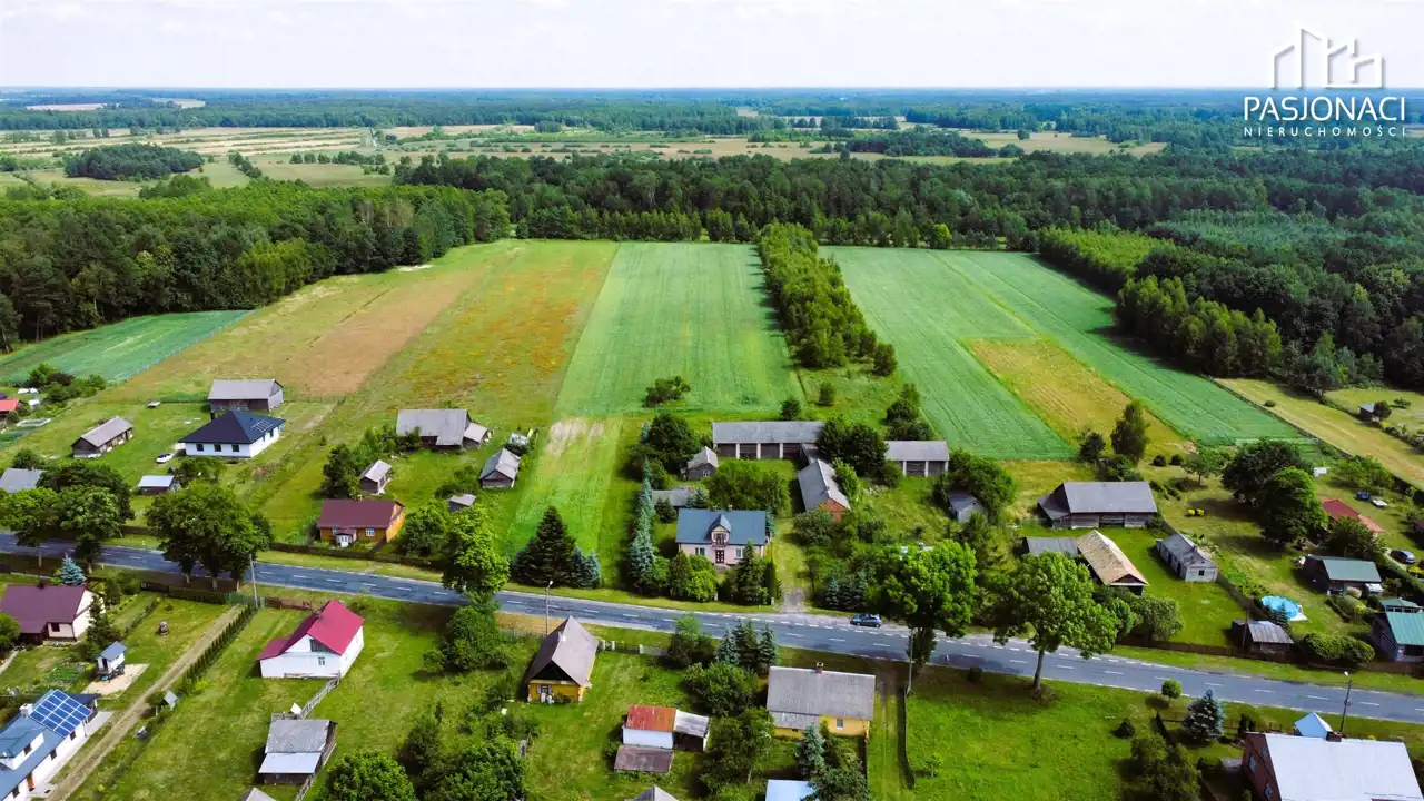 Nieruchomość jest wyposażona w przyłącze prądu z aktywnym licznikiem oraz wodę z sieci doprowadzoną do domu. Kolejnym atutem jest możliwość uzyskania warunków zabudowy oraz dokupienia pola z tyłu działki o powierzchni 1,3 ha, co może znacząco zwiększyć potencjał inwestycyjny tego miejsca.