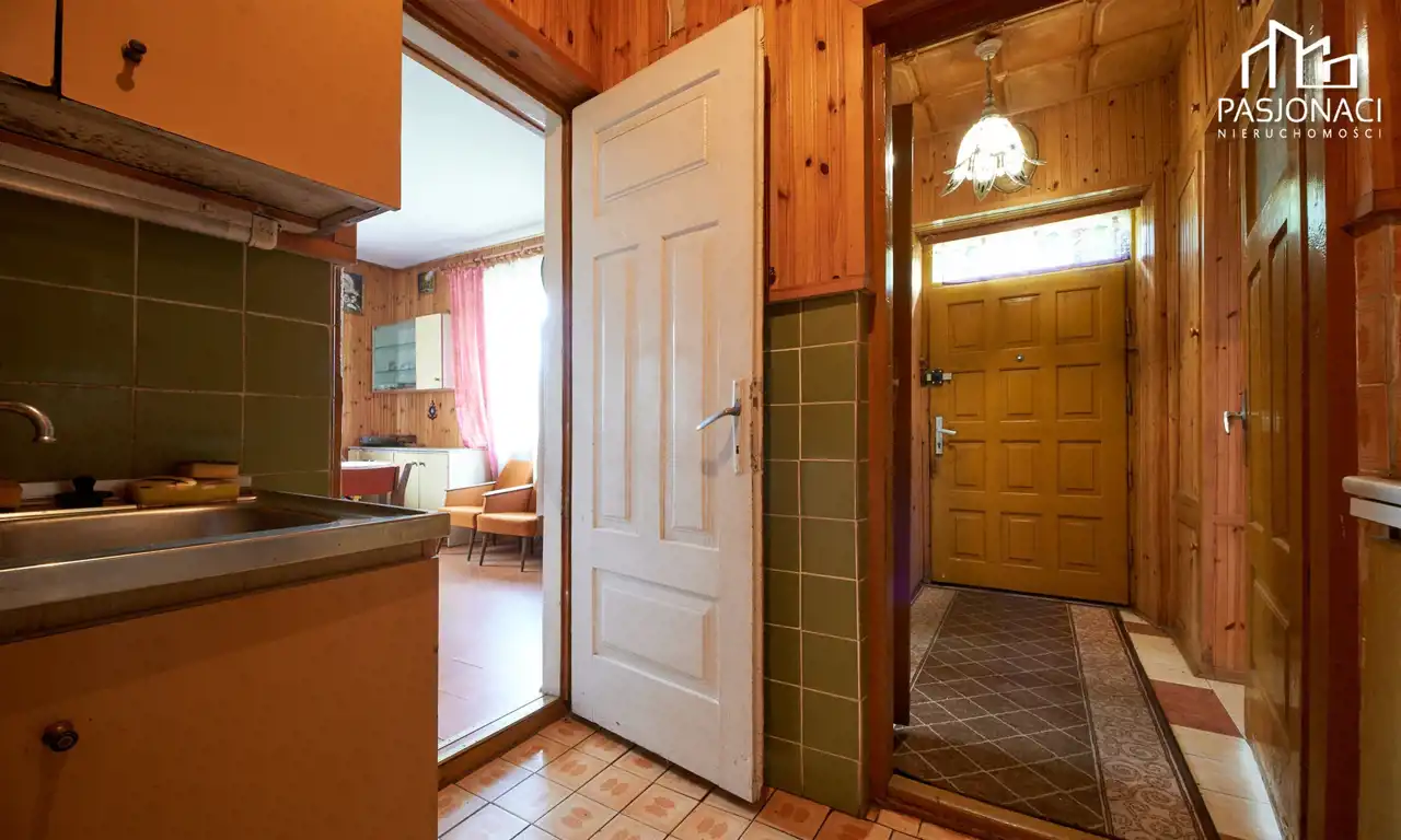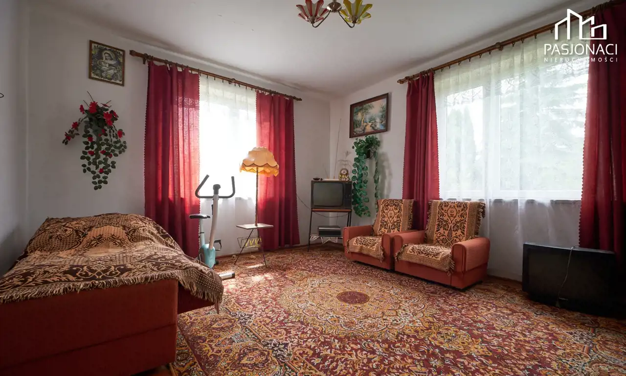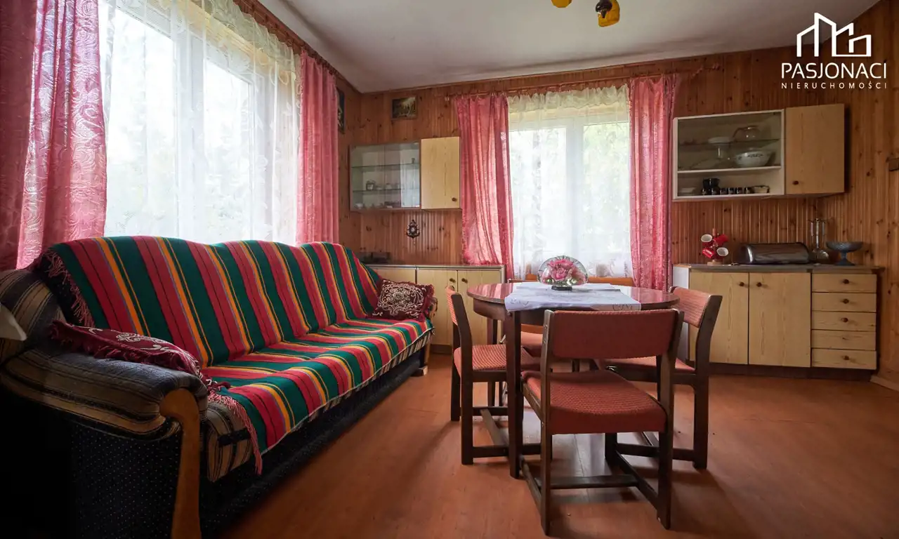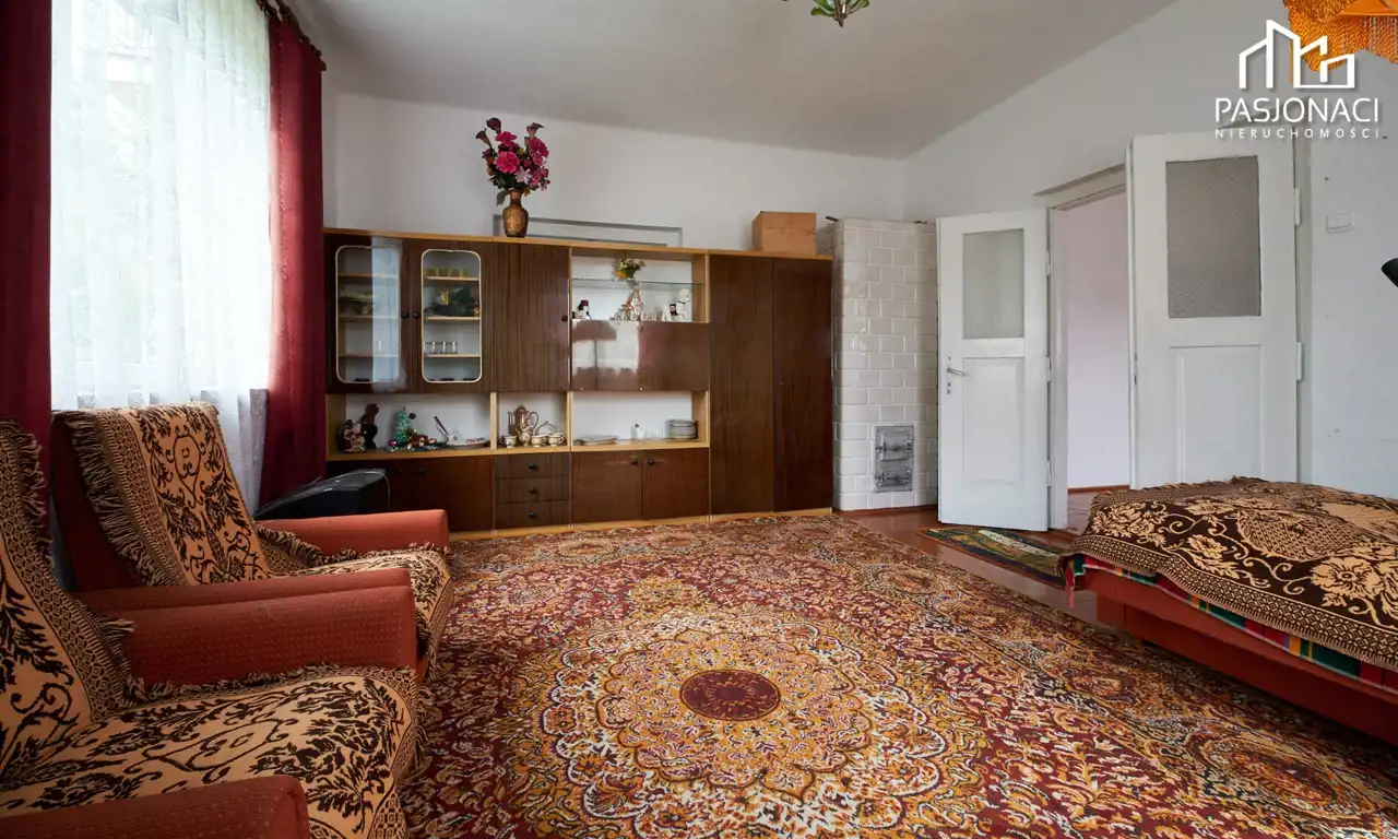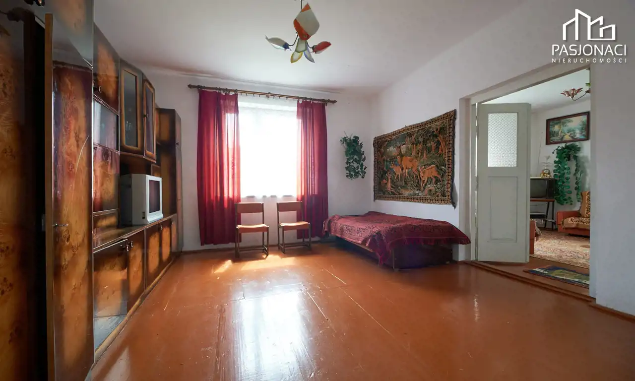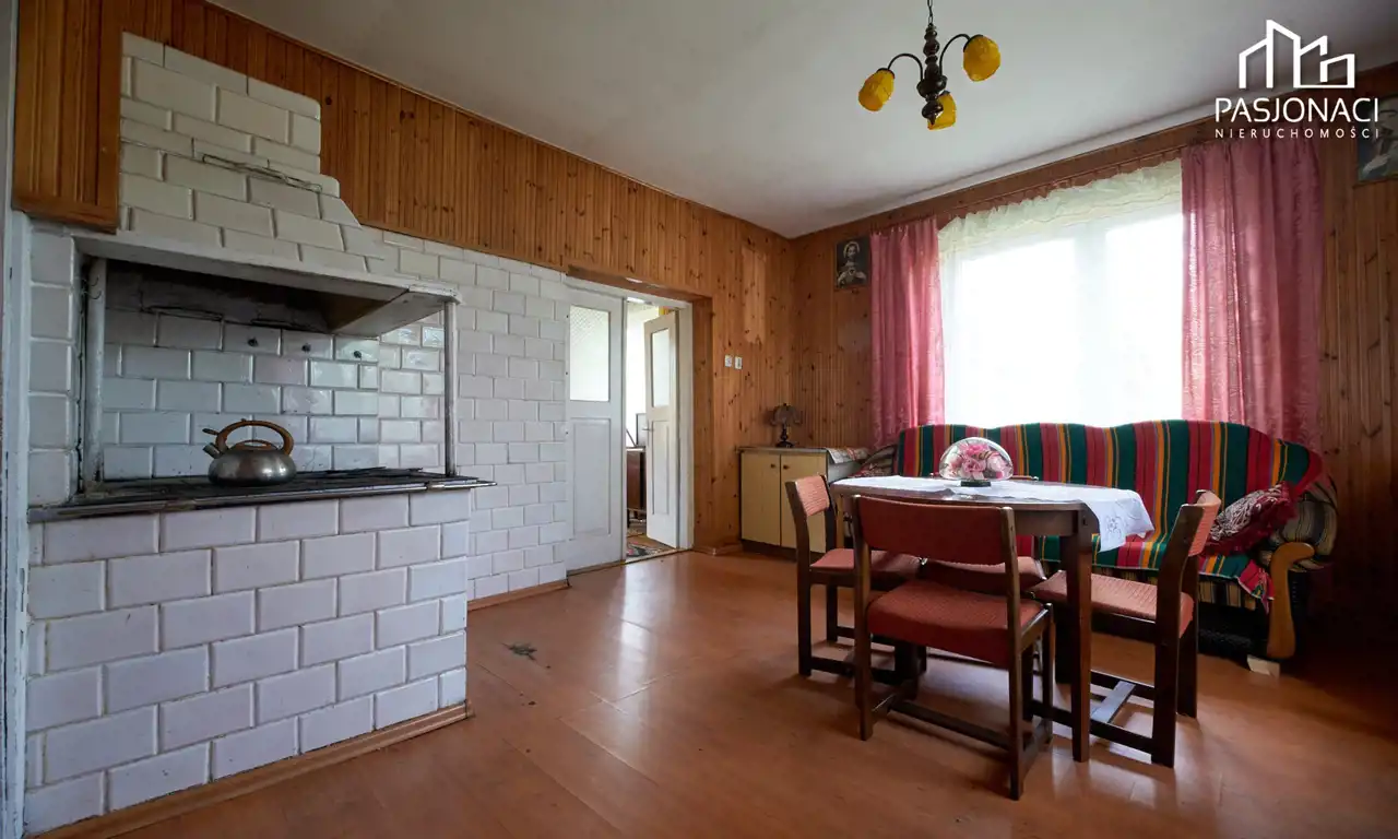 Dom mieszkalny, wykonany z trwałych materiałów murowanych, powstał 50 lat temu. Obecnie daje on Państwu niepowtarzalną okazję do zaaranżowania wnętrza zgodnie z własnymi upodobaniami. Na parterze budynku znajdują się cztery pokoje, kuchnia, mała łazienka oraz przedsionek. Podążając schodami w górę znajdziemy się na niezagospodarowanym do tej pory poddaszu użytkowym. Budynek został wyposażony w nowoczesne okna oraz dach, który został wymieniony 3 lata temu. Dom jest częściowo podpiwniczony, posiada kuchnię kaflową oraz dwa piece kaflowe, idealne na chłodniejsze dni.