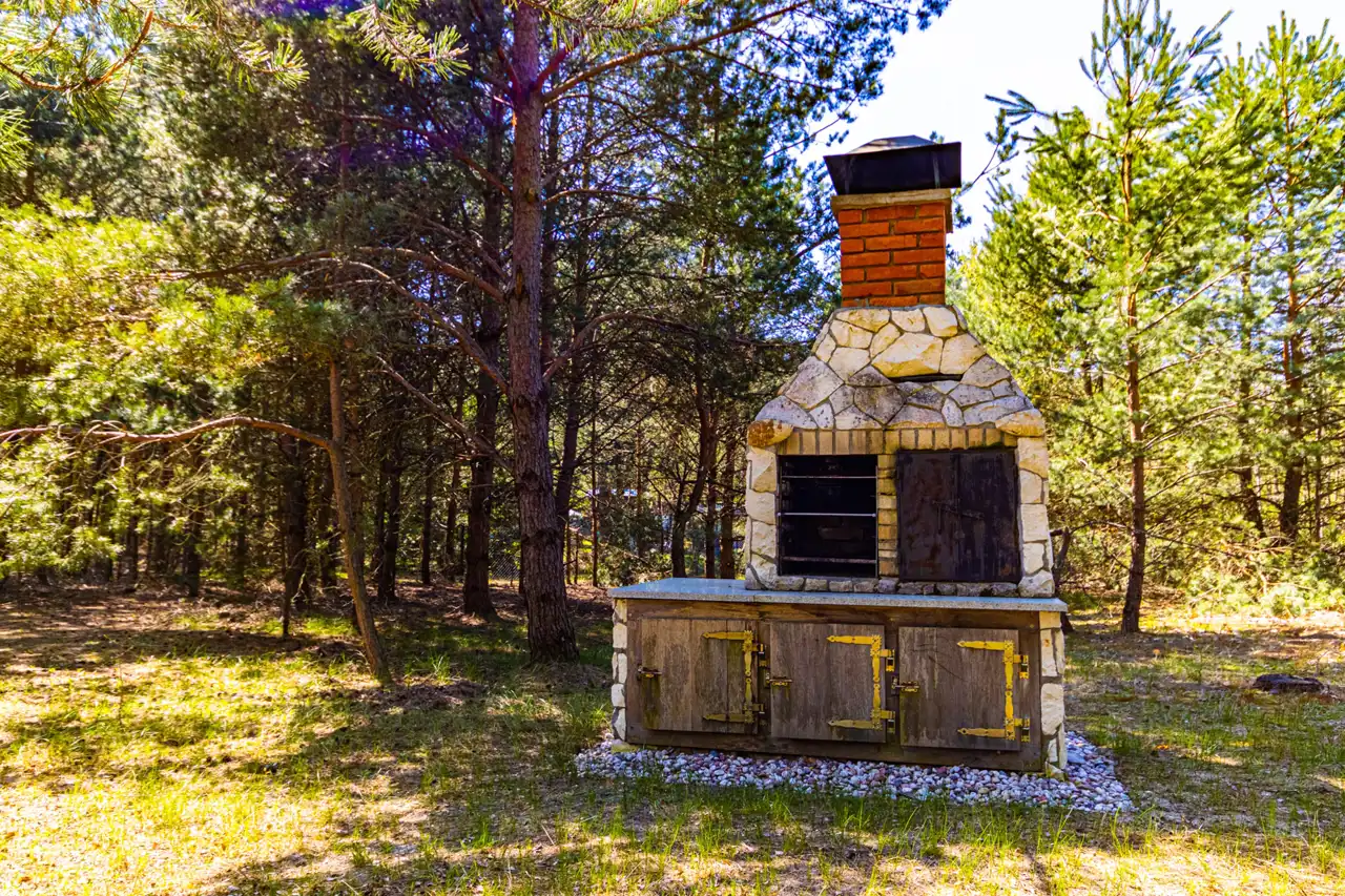 Dla miłośników grilla, na działce znajduje się piękny kamienny grill, który pozwala na przygotowanie smacznych posiłków na świeżym powietrzu.
