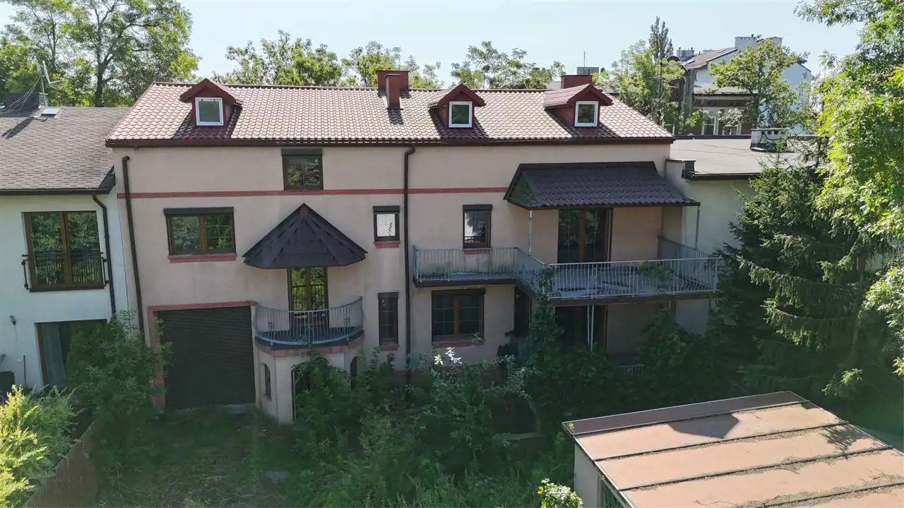 Powierzchnia zabudowy wynosi 202 m² nie wliczając powierzchni dobudowanego garażu oraz schodów od strony ulicy.