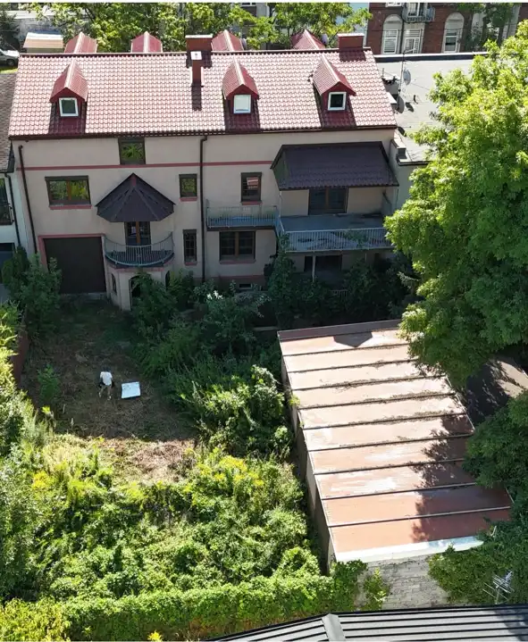 Nieruchomość mieszkalna podpiwniczona w całości, poza bramą przejazdową.