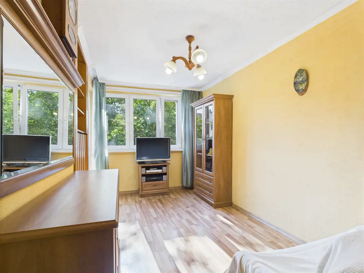 Do mieszkania przynależy balkon z widokiem na zielone podwórko oraz piwnica. Lokal jest w stanie do odświeżenia (co daje nowemu właścicielowi możliwość aranżacji wnętrza według własnych potrzeb).