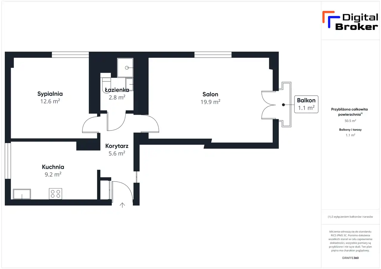 - Charakterystyka mieszkania 48.95 m2, 2 pokoje