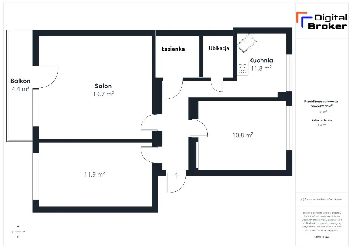 - Charakterystyka mieszkania 60 m2, 3 pokoje
