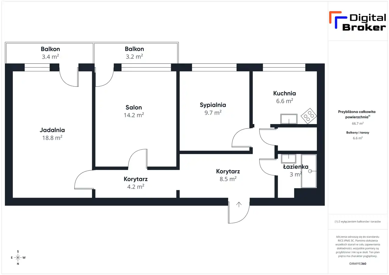 - Charakterystyka mieszkania 67.07 m2, 3 pokoje