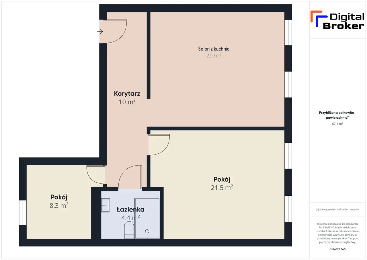- Charakterystyka mieszkania 67 m2, 3 pokoje