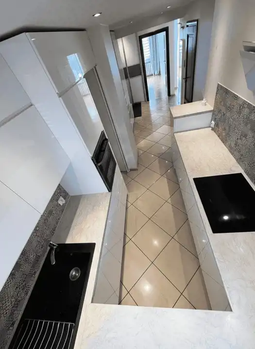 - Kuchnia w zabudowie z końca 2021 r.: * piekarnik *Samsung DualCook*, * płyta indukcyjna *Whirlpool*, * pochłaniacz z filtrem węglowym *Falmec*,