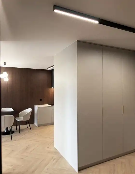Wszystkie zabudowy stolarskie wykonane zostały z płyt meblowych renomowanej firmy EGGER — estetycznie, funkcjonalnie i na lata.