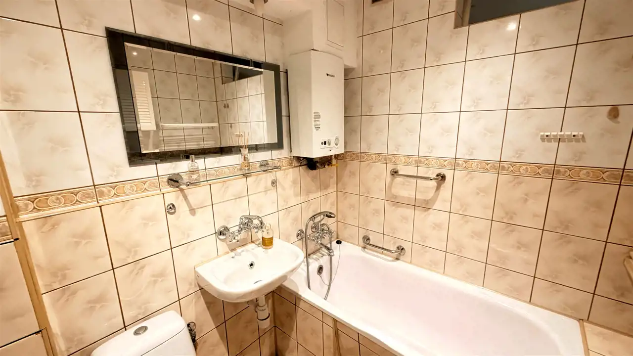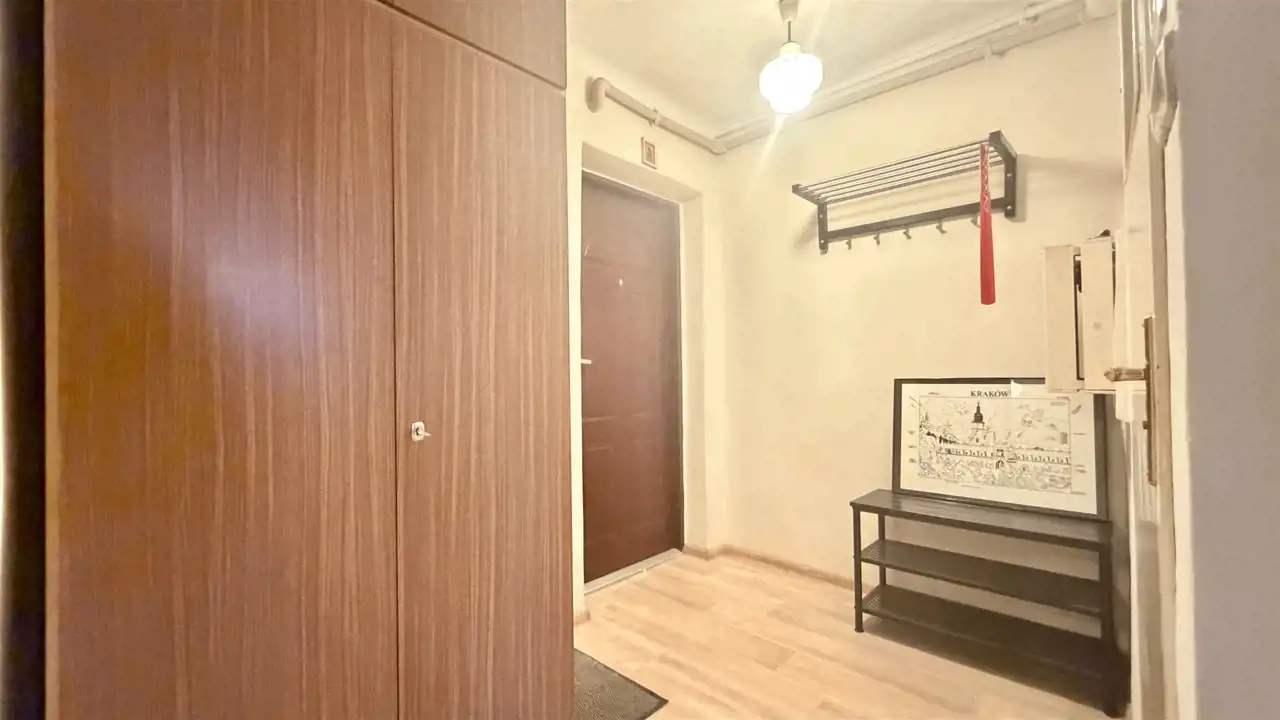 Układ mieszkania obejmuje dwa oddzielne, izolowane pokoje, oddzielną kuchnię z oknem, łazienkę oraz balkon. W budynku znajduje się winda, piwnica oraz parking podziemny. Ogrzewanie miejskie, ciepła woda z kotła gazowego. Stan mieszkania dobry, rynek wtórny.