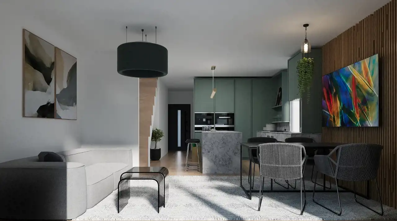 Na sprzedaż nowoczesna połowa bliźniaka zaprojektowana jako budynek dwukondygnacyjny (parter + poddasze). Powierzchnia użytkowa jednej połówki wynosi 81,95 m². Zapewnia to komfortowe i logicznie zaplanowane wnętrza, idealne zarówno dla rodzin, jak i osób poszukujących pierwszej nieruchomości.