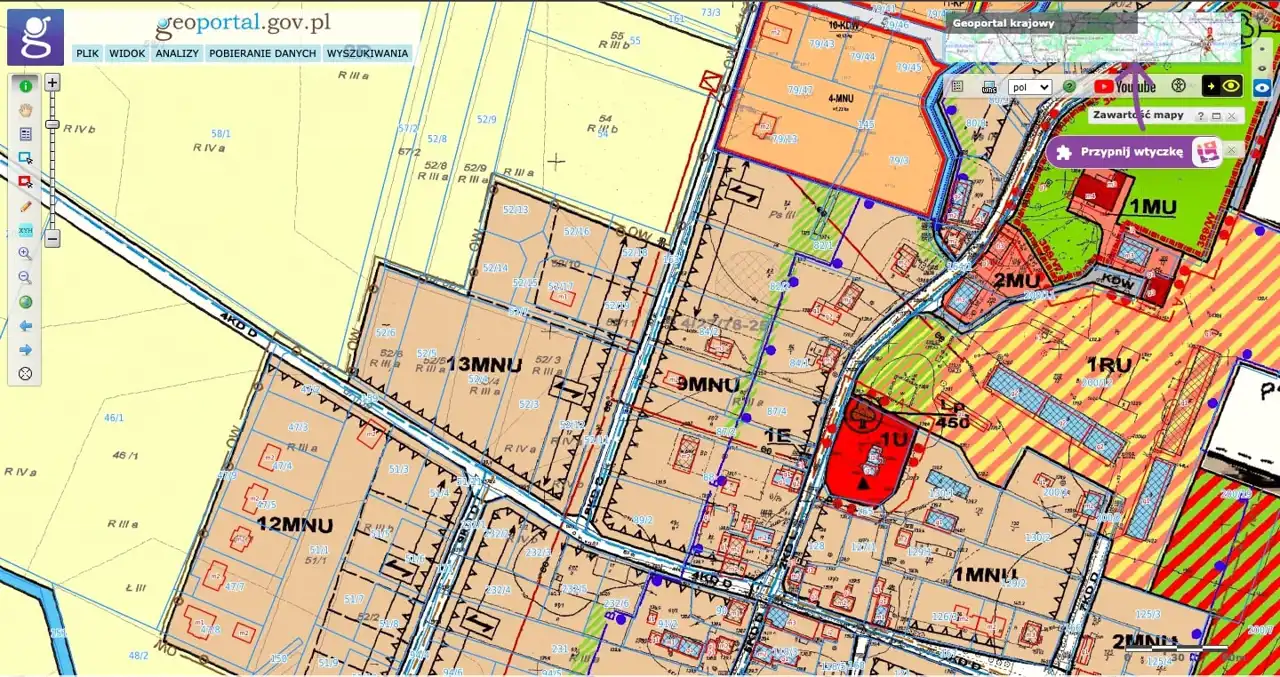 Zgodnie z miejscowym planem zagospodarowania przestrzennego (uchwała nr LI/437/10 Rady Miejskiej w Środzie Śląskiej z dnia 27 października 2010 r.) działka znajduje się na terenie oznaczonym symbolem MNU, czyli przeznaczonym pod zabudowę mieszaną – mieszkaniową oraz usługowo-gospodarczą. Plan dopuszcza budowę domu jednorodzinnego wolnostojącego lub bliźniaka, a także prowadzenie nieuciążliwej działalności usługowej.
