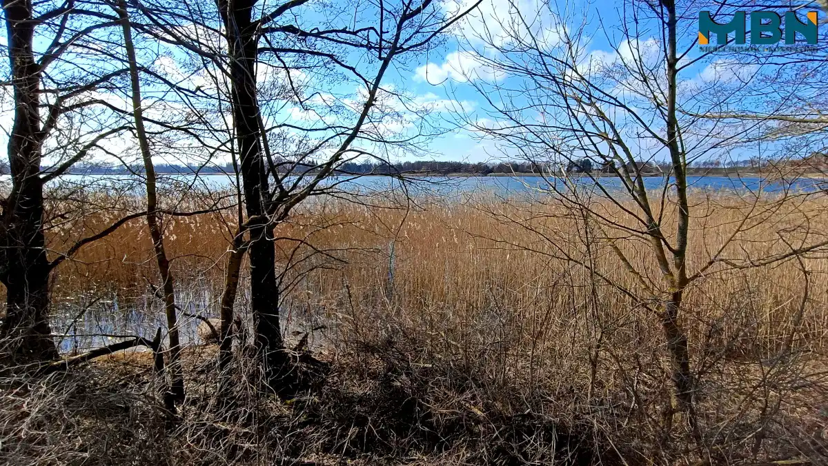 Brzeg jeziora: zejście z lekkim nachyleniem, nieduża ilość trzcin;