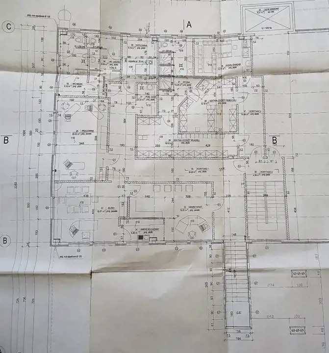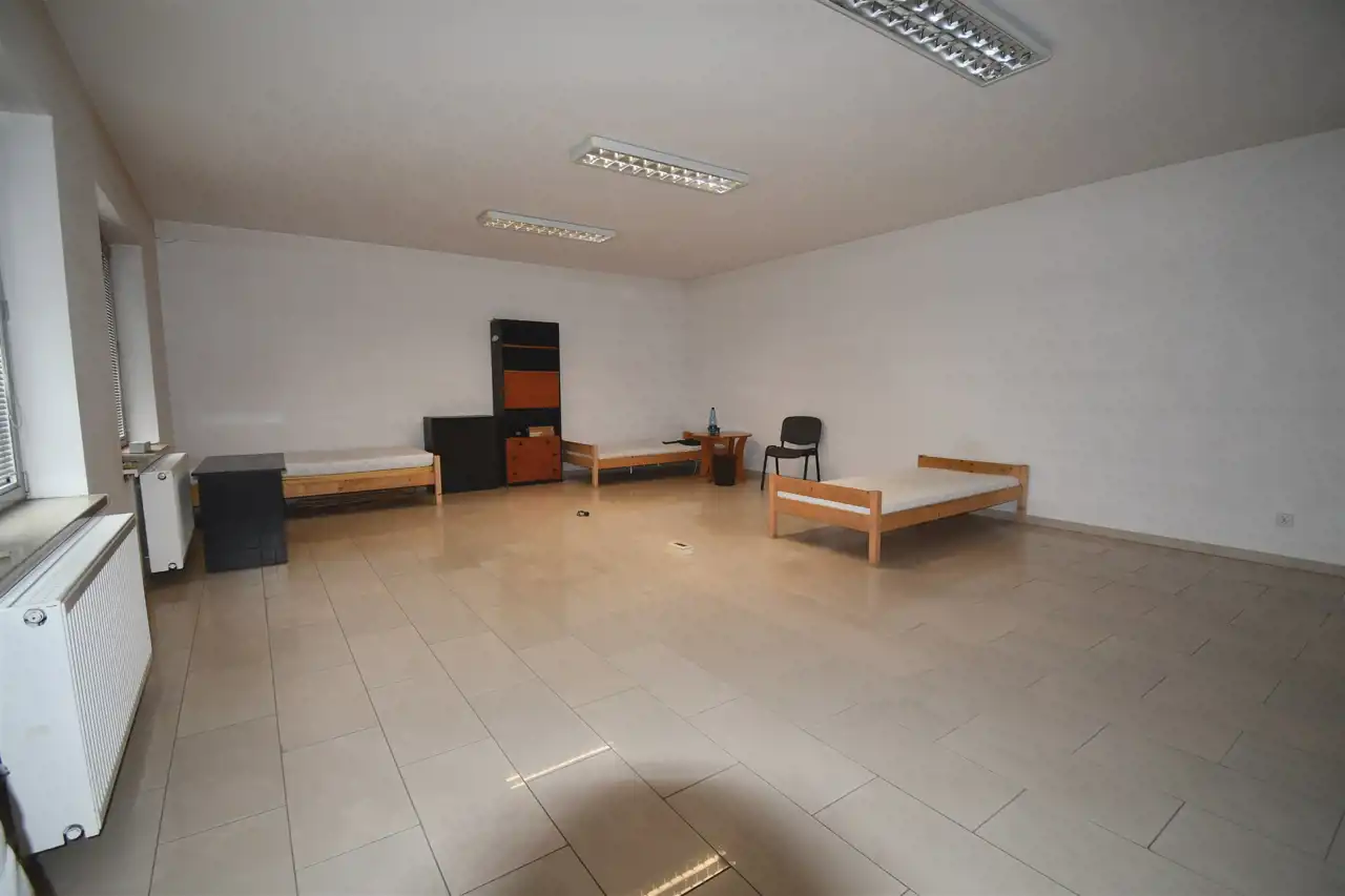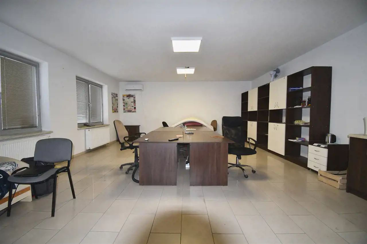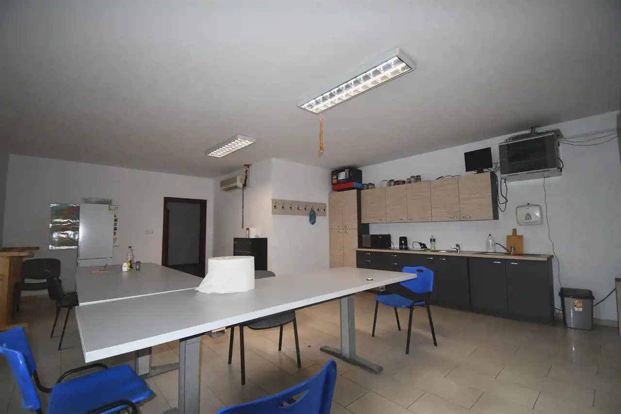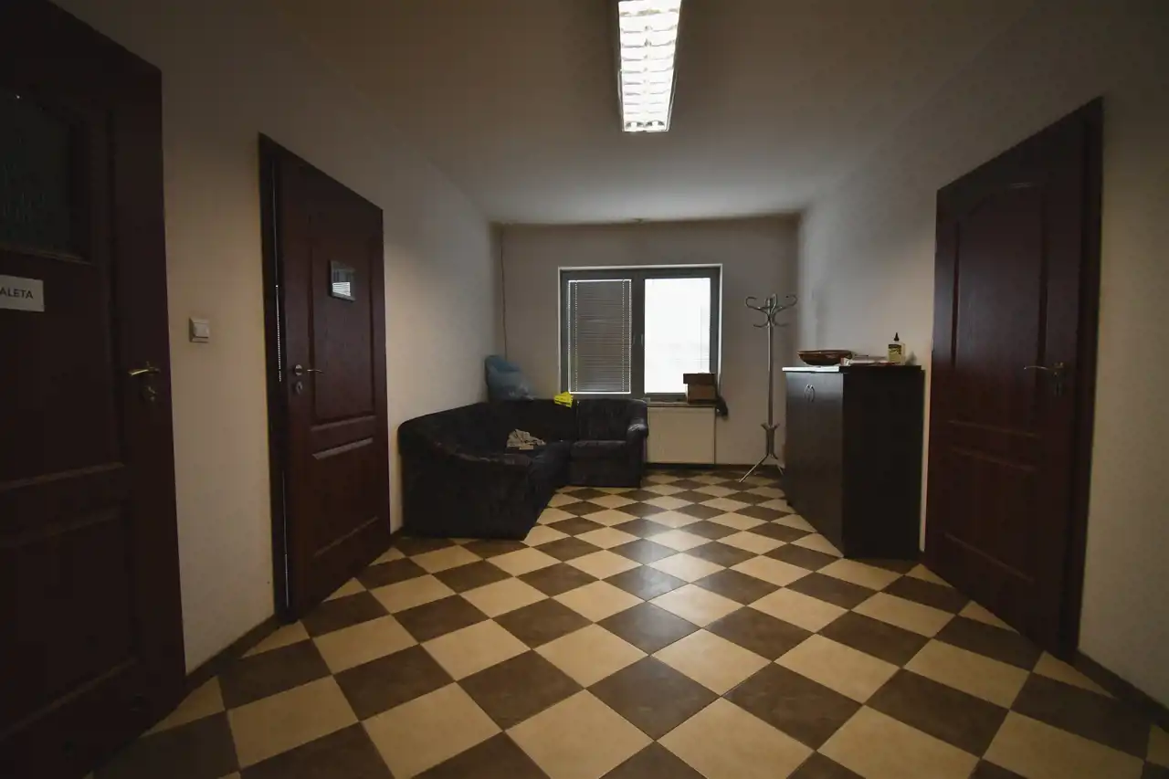 Budynek posiada instalację wentylacyjno-grzewczą tj. nagrzewnice firmy COSMO zasilane z kotła na paliwo stałe oraz piec gazowy. Moc przyłączeniowa na chwilę obecną wynosi 50kW. Nieruchomość posiada 2 wjazdy oraz parking przed budynkiem biurowym.