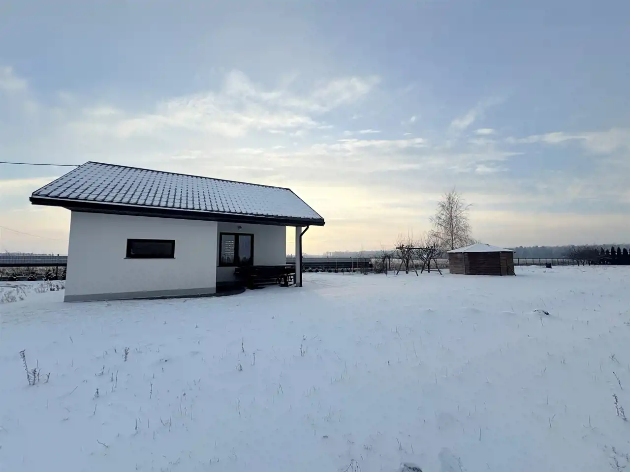 Na działce znajduje się altana oraz dom o powierzchni ok. 40 m², ogrzewany za pomocą klimatyzacji, co umożliwia zamieszkanie przez cały rok. Budynek jest w dobrym stanie technicznym i gotowy do zamieszkania od zaraz.