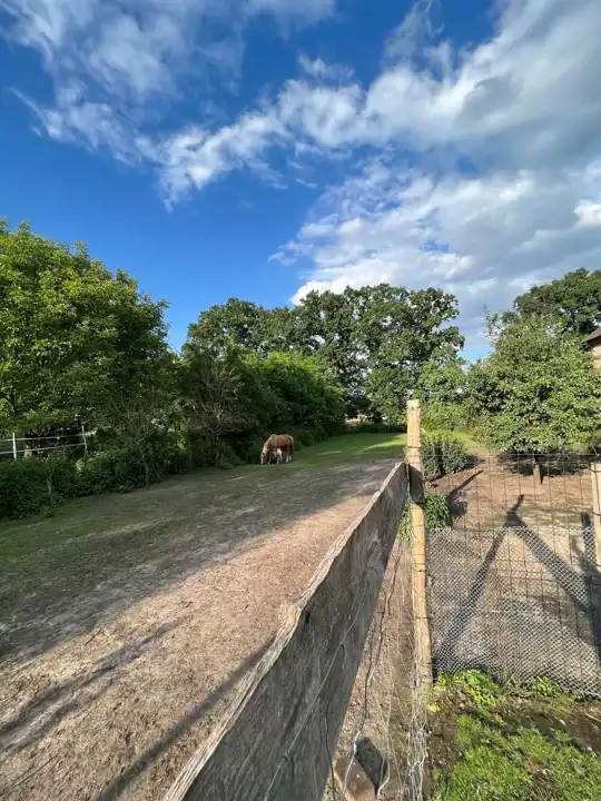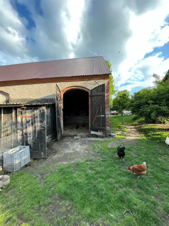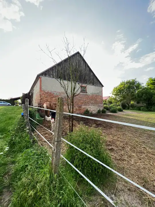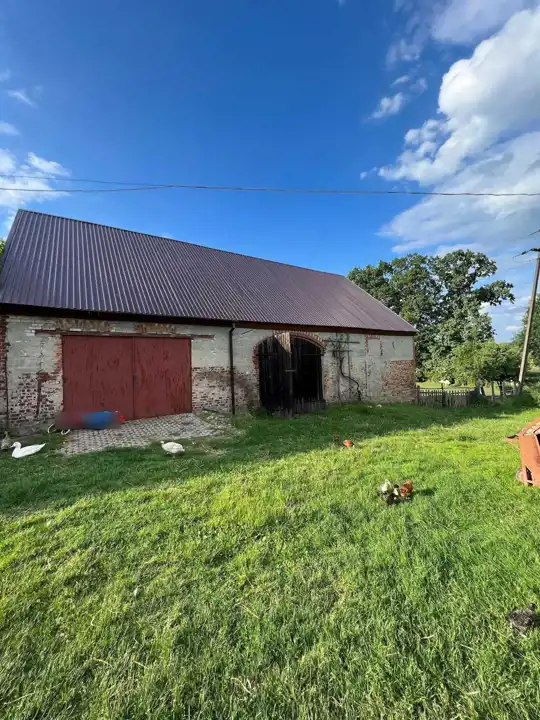 Na działce znajdują się dwie stodoły, w których obecnie przebywają zwierzęta. Istnieje wyznaczone miejsce dla koni oraz padok na posesji. W jednej stodole został również wymieniony dach.