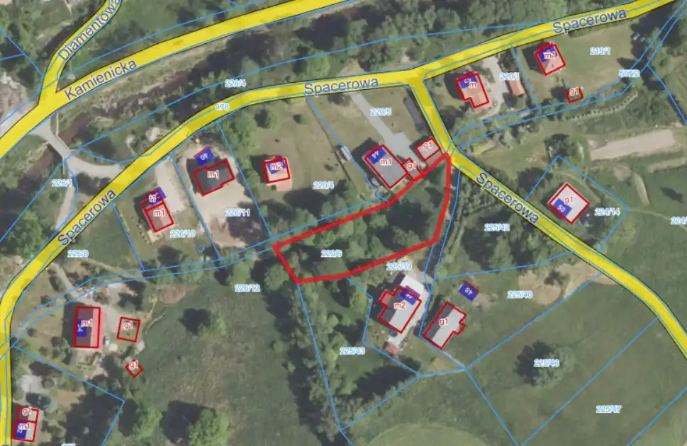 - Media Woda: w ulicy; Kanalizacja: w ulicy; Prąd: na działce