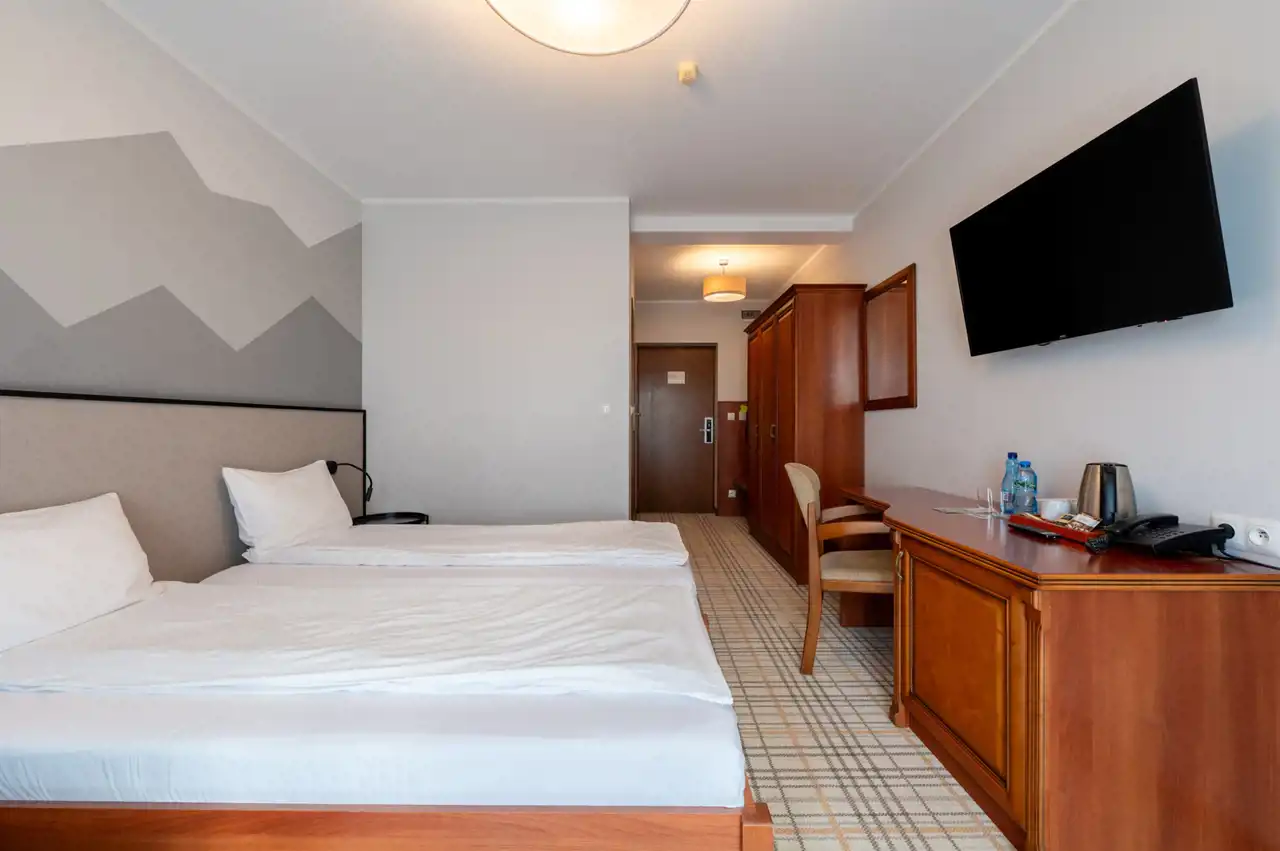 Hotel Kyriad, w którym znajduje się nieruchomość, działa prężnie, zapewniając obłożenie oraz wyjątkowe udogodnienia, w tym basen, jacuzzi z panoramą Karkonoszy, sauny oraz spa. Goście mogą również korzystać z restauracji serwującej smaczne jedzenie. W częściach wspólnych budynku możemy liczyć na min. salę bilardową, miejsca zabaw dla dzieci czy przestronne strefy wypoczynku.