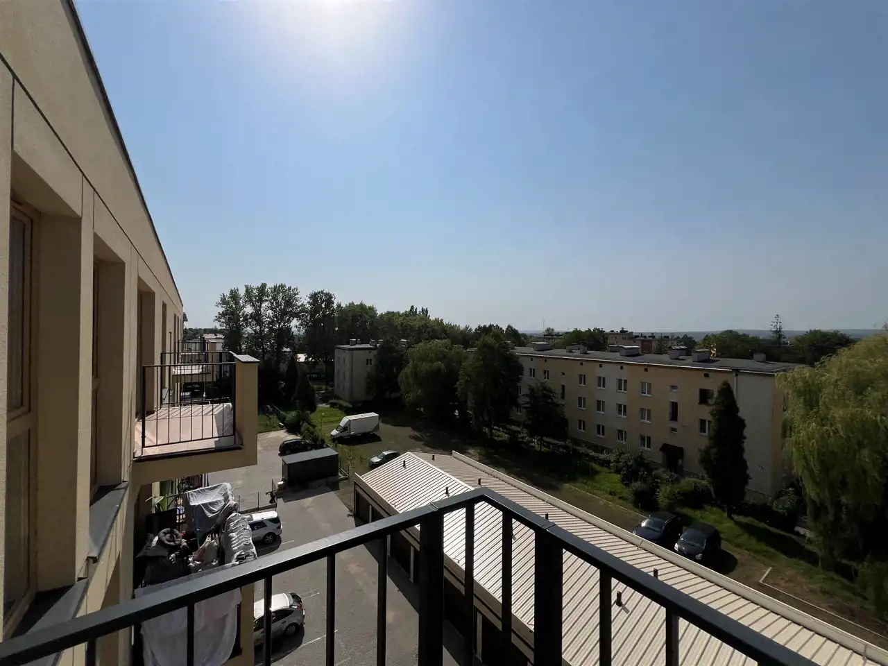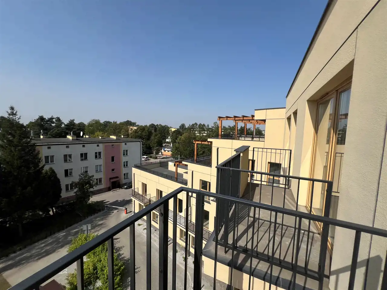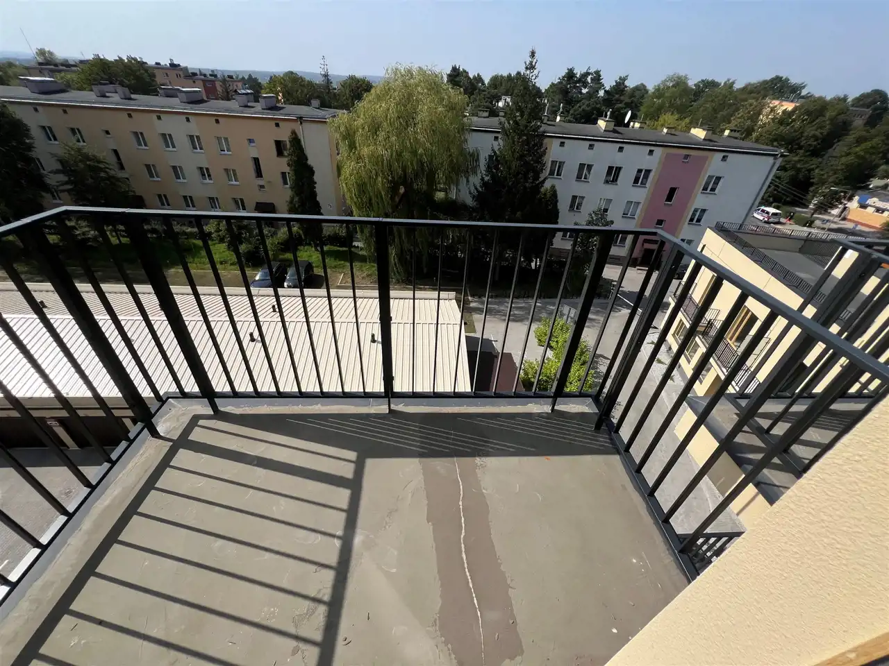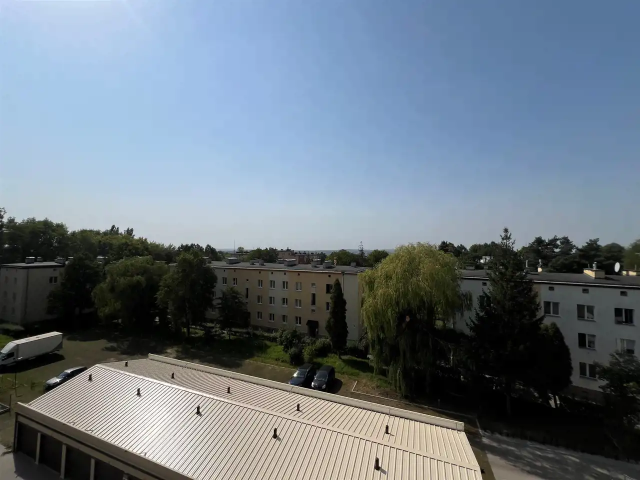 Mieszkanie na czwartym piętrze z balkonem. Duża ustawna łazienka. Dwie sypialnie oraz aneks kuchenny w salonie połączonym z jadalnią. Możliwość wstawienia szerokiej kanapy oraz stolika kawowego. Z salonu wychodzi się na balkon na zachodnią część budynku z widokiem na patio i drzewa.