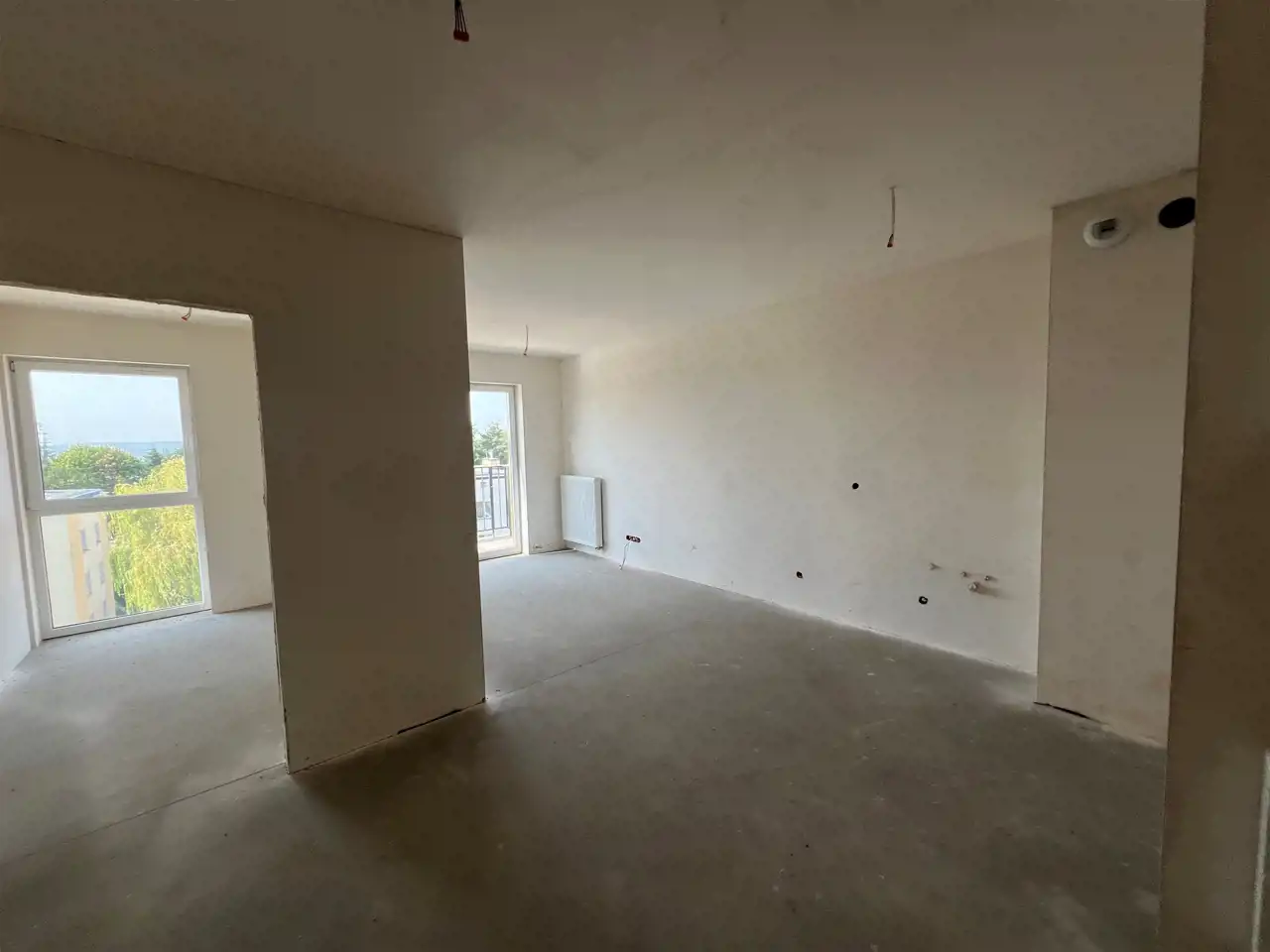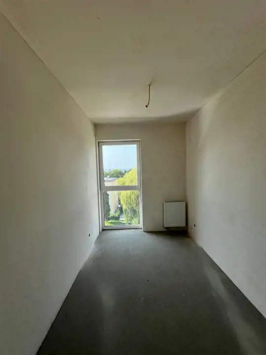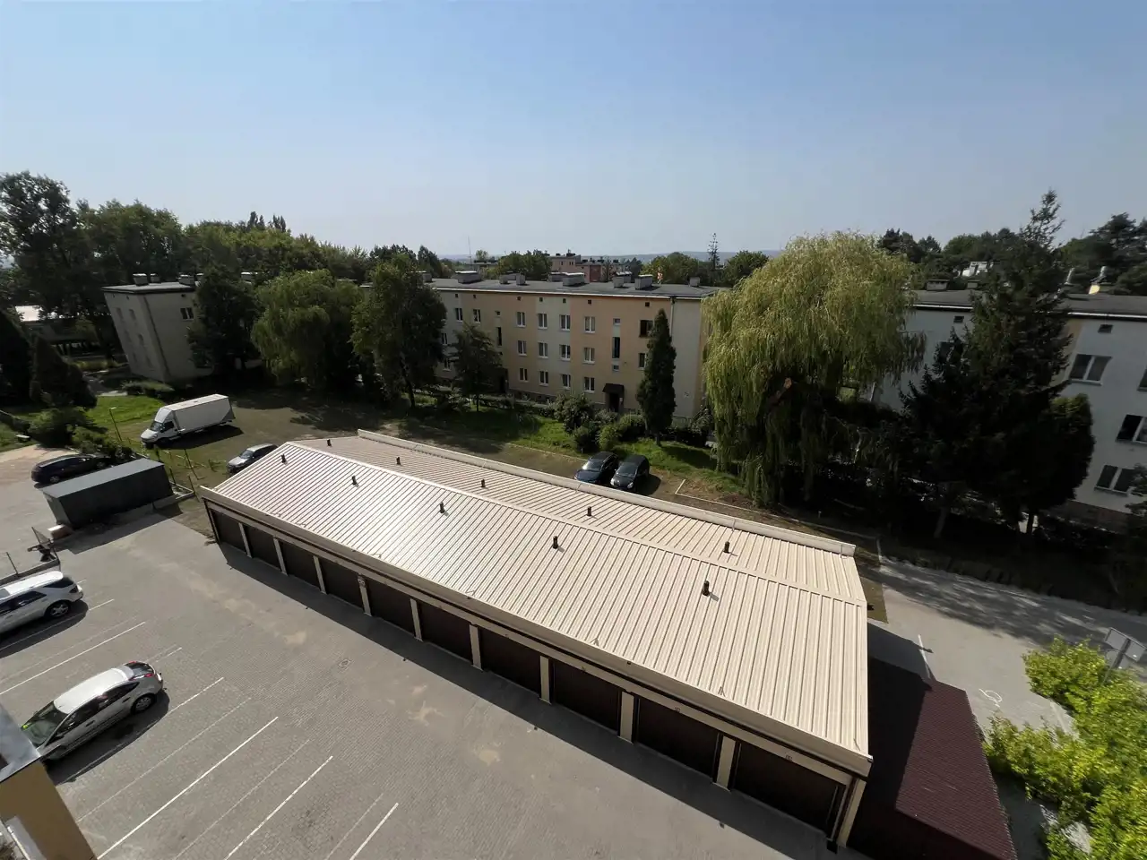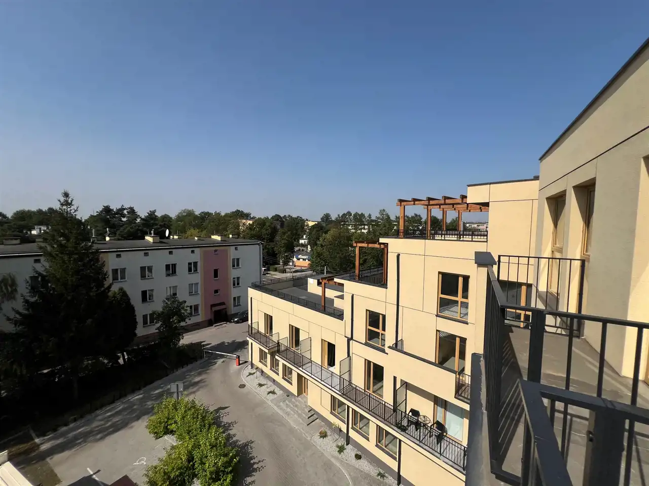 Mieszkanie na czwartym piętrze z balkonem. Duża ustawna łazienka. Dwie sypialnie oraz aneks kuchenny w salonie połączonym z jadalnią. Możliwość wstawienia szerokiej kanapy oraz stolika kawowego. Z salonu wychodzi się na balkon na zachodnią część budynku z widokiem na patio i drzewa.