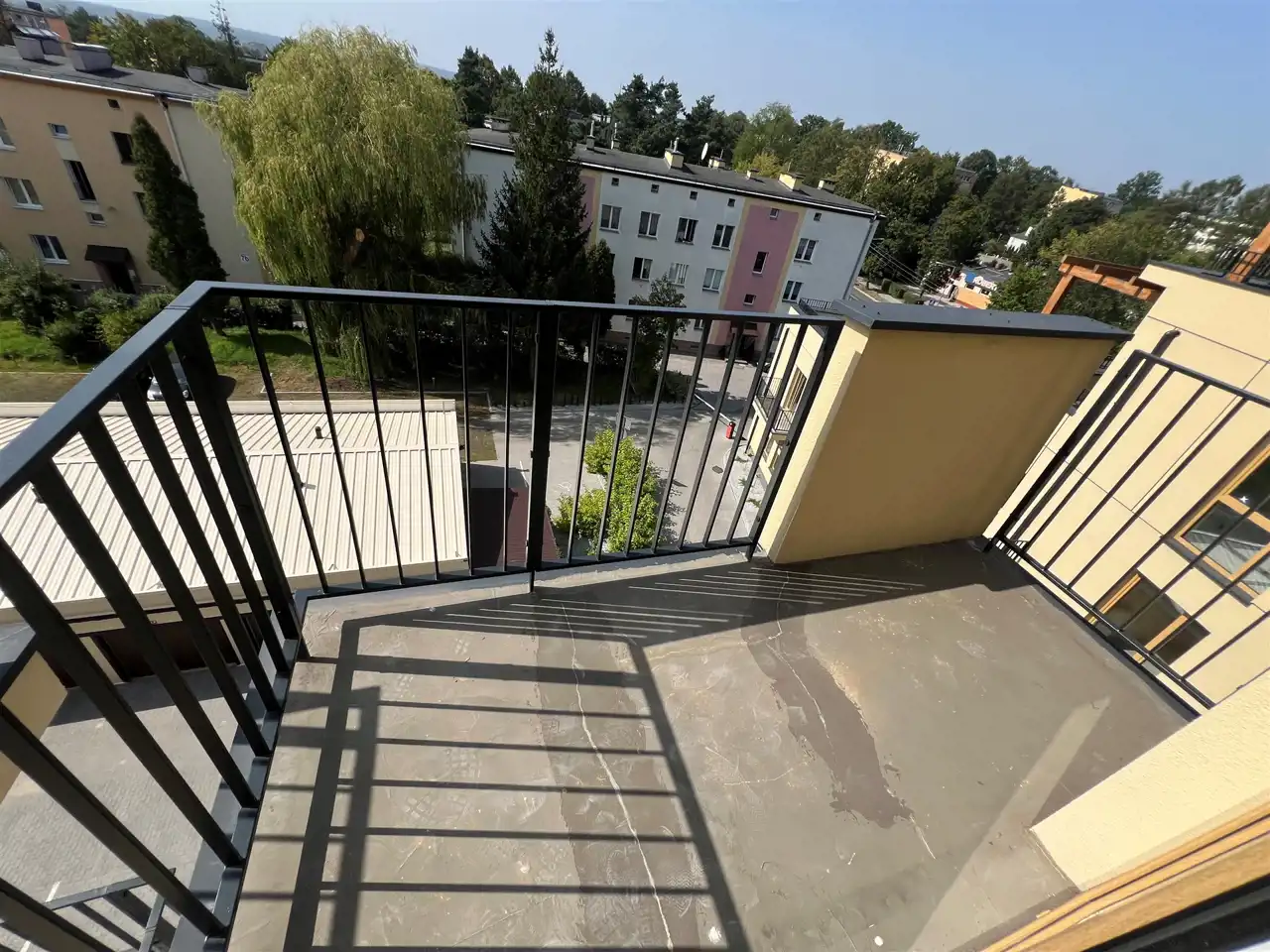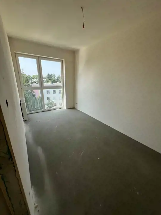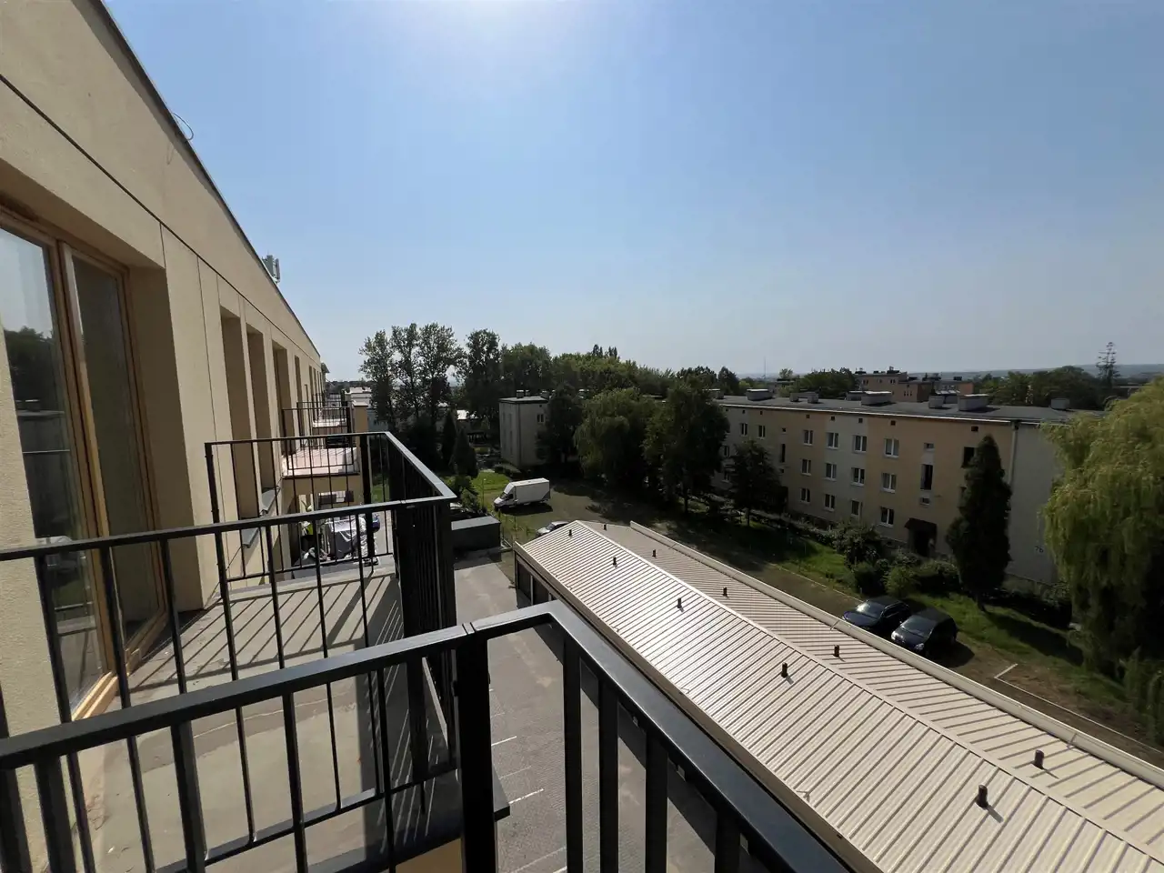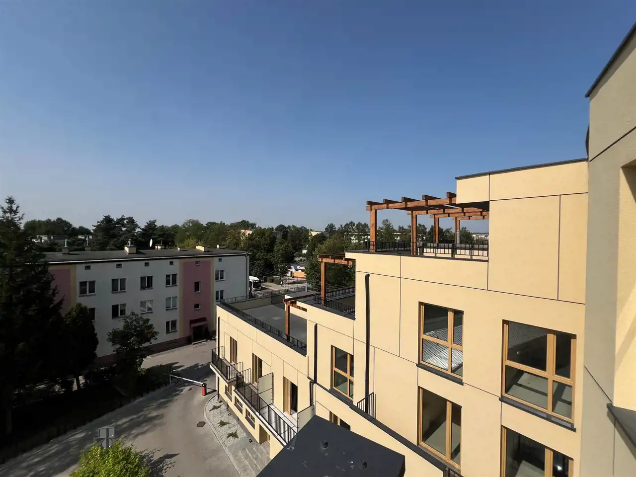 Mieszkanie na czwartym piętrze z balkonem. Duża ustawna łazienka. Dwie sypialnie oraz aneks kuchenny w salonie połączonym z jadalnią. Możliwość wstawienia szerokiej kanapy oraz stolika kawowego. Z salonu wychodzi się na balkon na zachodnią część budynku z widokiem na patio i drzewa.