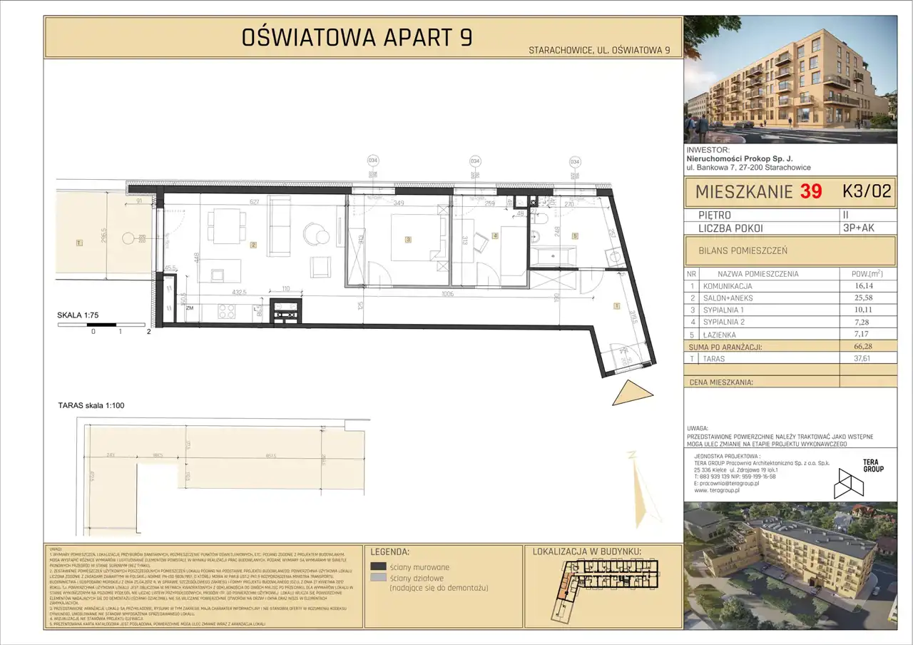 - Charakterystyka mieszkania 66.28 m2, 3 pokoje