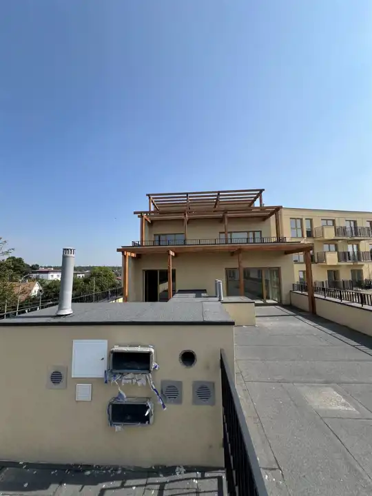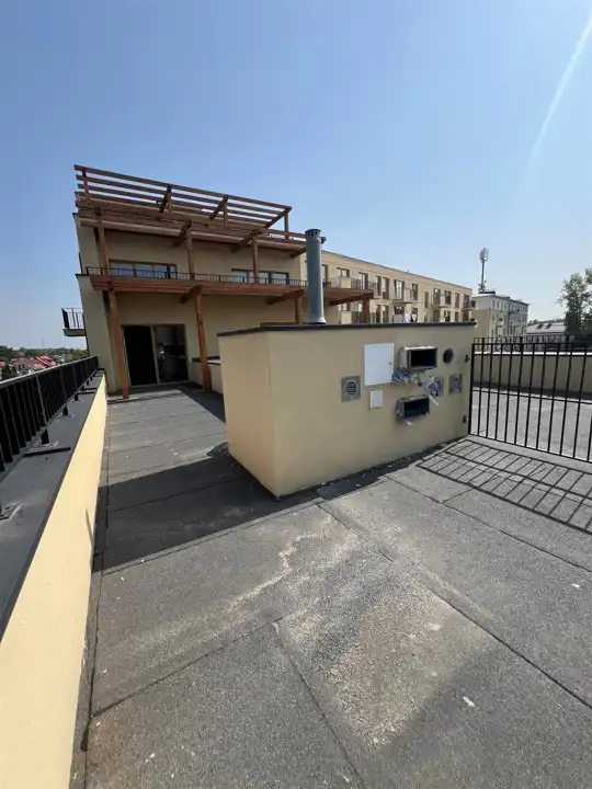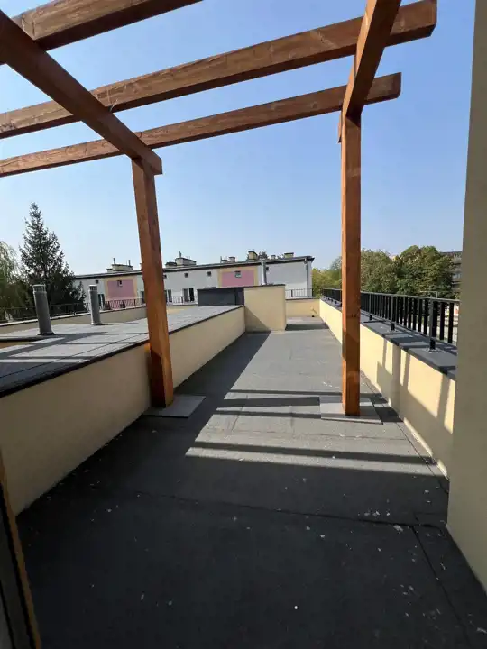 Mieszkanie na drugim piętrzę z dużym ustawnym tarasem. Charakterystycznym elementem mieszkania to taras o powierzchni prawie 40 m2 co daje duże możliwości aranżacji dla aktywności rodzinnych lub chwili spokoju. Długi korytarz prowadzi odpowiednio do dużej łazienki oraz dwóch sypialni. Ekspozycja mieszkania to północny zachód.