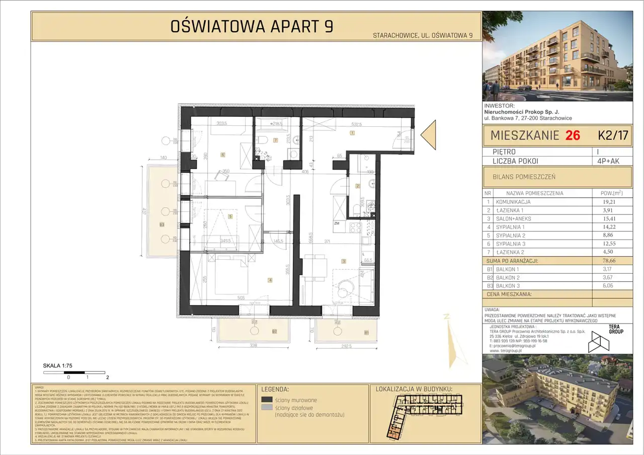 - Charakterystyka mieszkania 78.66 m2, 4 pokoje