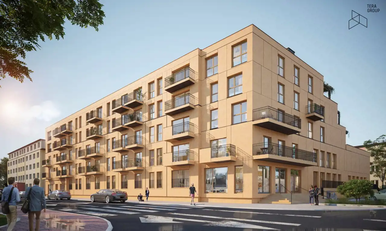 Odpowiedź: Budynek znajduje się w centrum miasta. Najbliższy sklep spożywczy będzie znajdować się w budynku, na parterze. Inne sklepy spożywczo-przemysłowe znajdują się w odległości około 1 km od budynku. W promieniu około 1 km znajdują się także 3 Szkoły Podstawowe, 2 Licea Ogólnokształcące oraz 2 Szkoły Zawodowe.