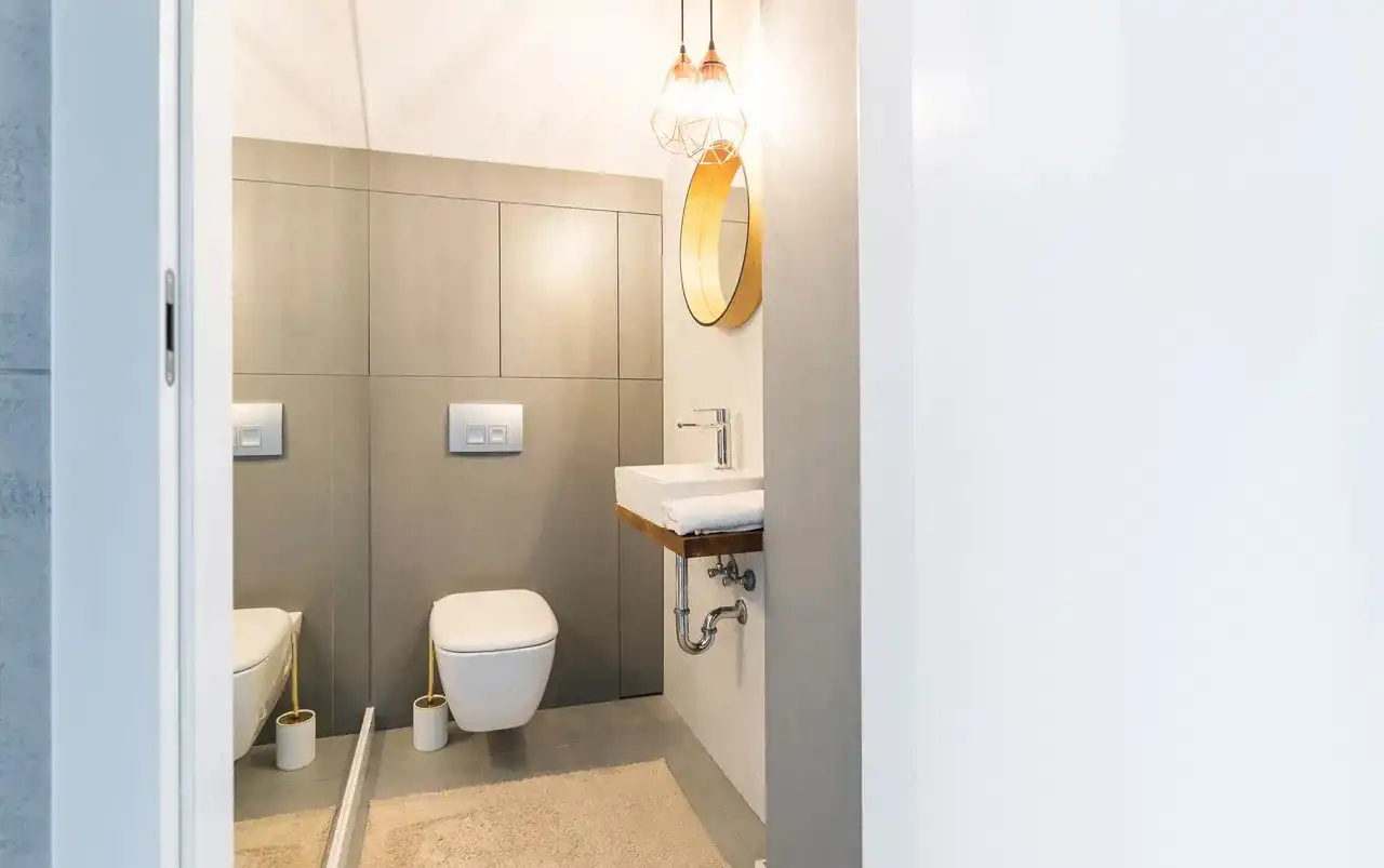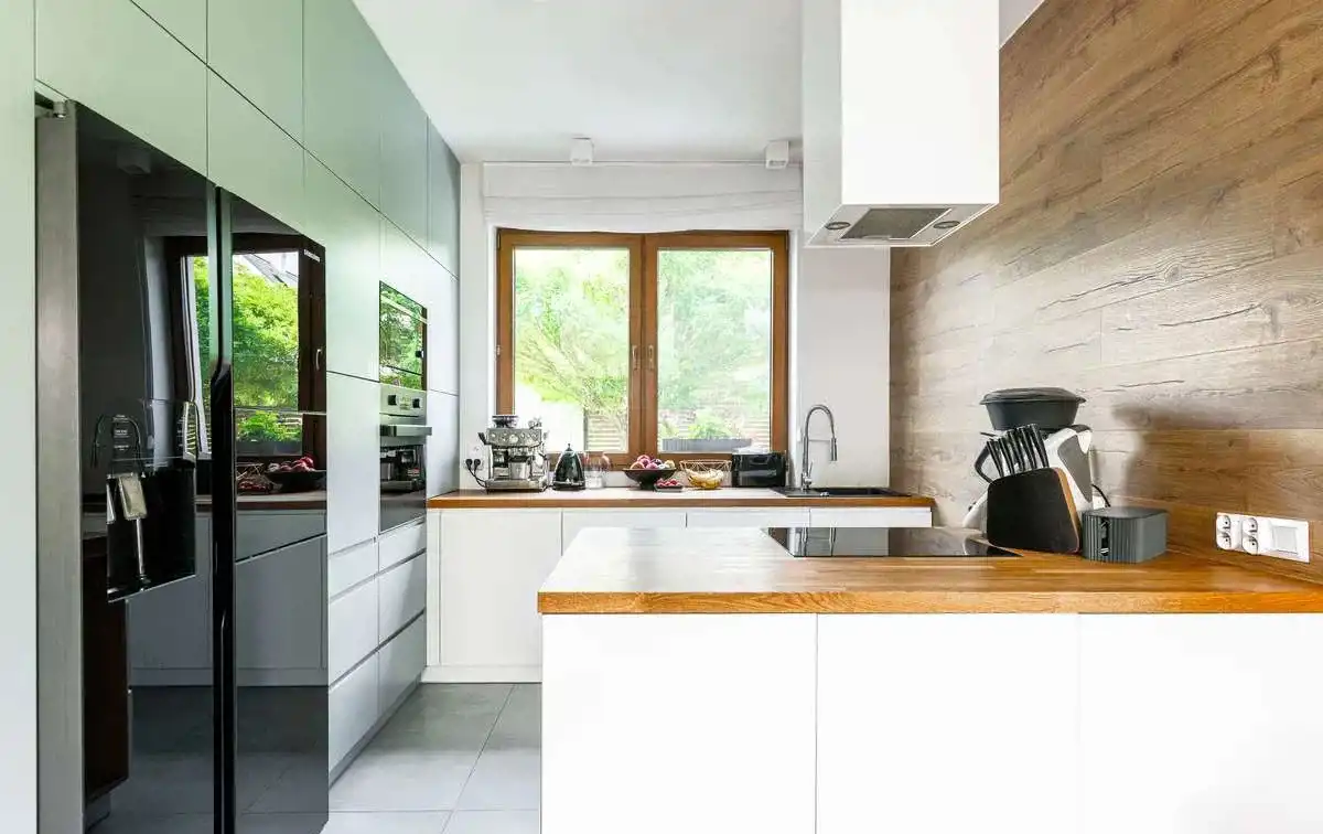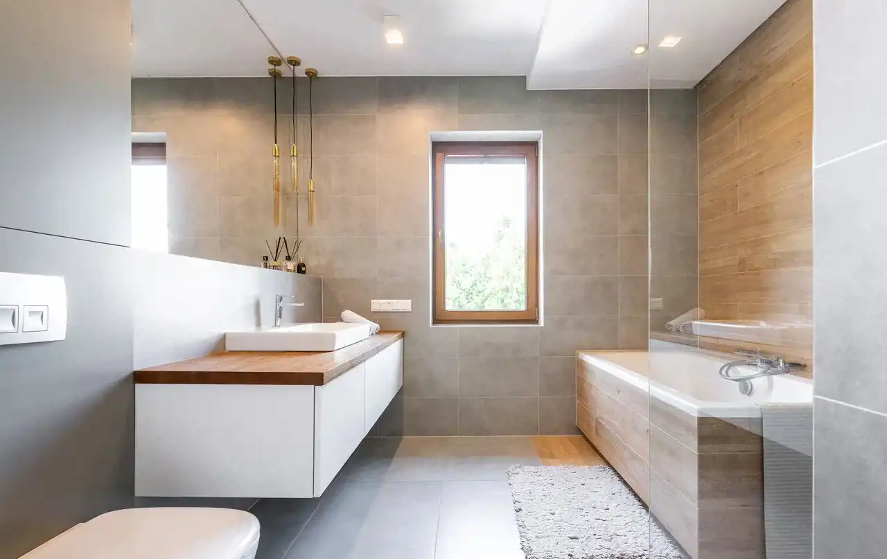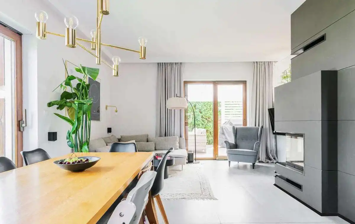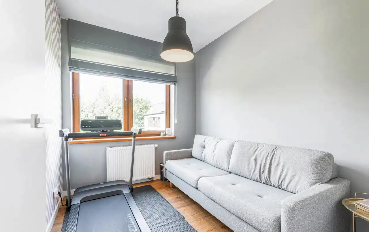 - nowoczesne wykończenie, neutralna stylistyka, duże okna,
