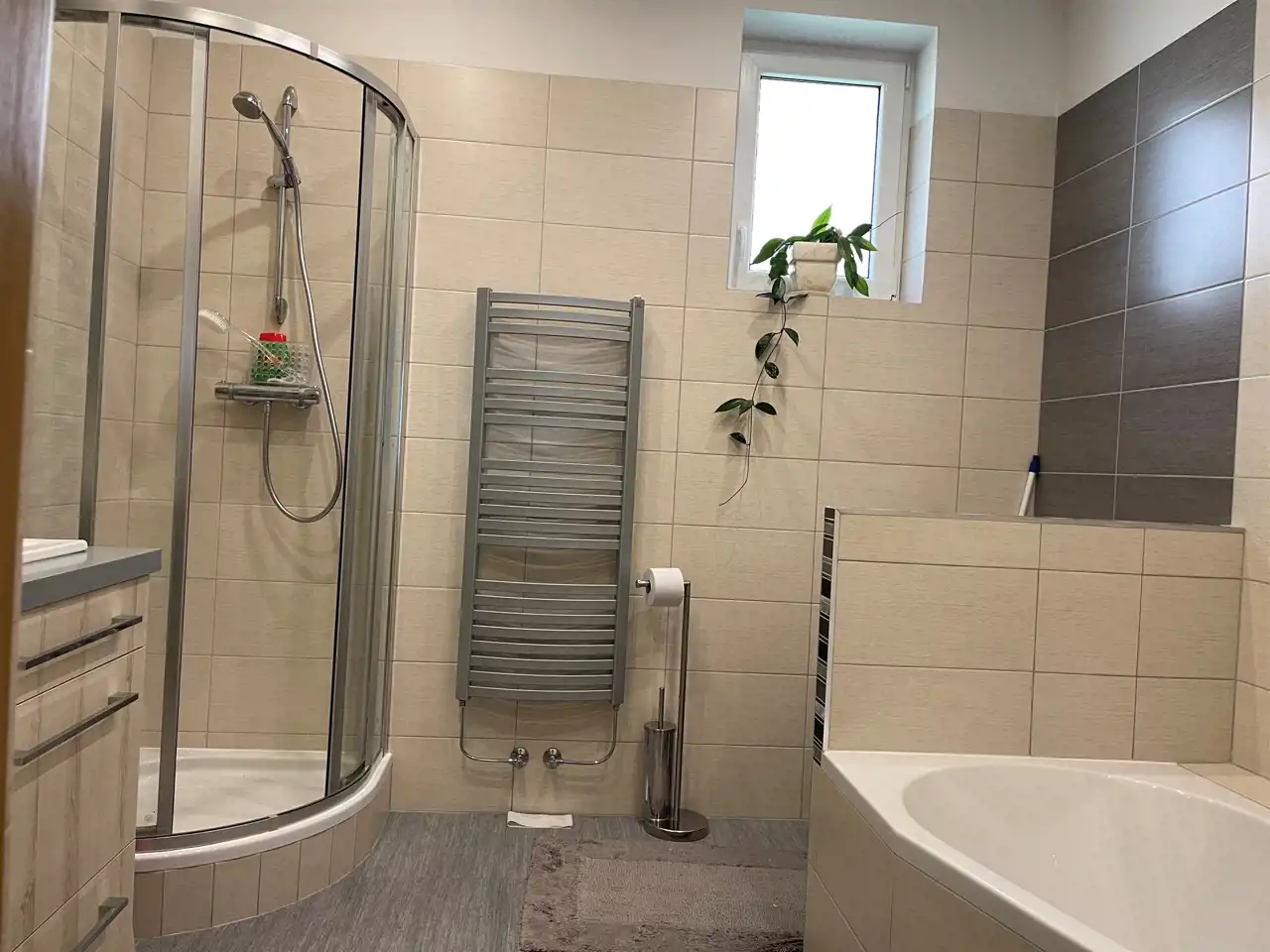 Dodatkowo jest pokój z łazienką , który ma również oddzielne wejście ( doskonały np. na biuro, lokum dla dorastającego dziecka czy rodzica ).