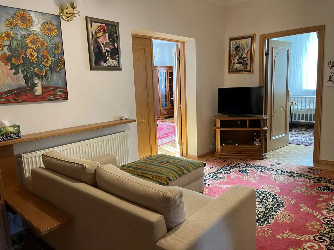 Lokal składa się z przedsionka, widnej, oddzielonej kuchni, salonu, dwóch sypialni oraz przechodniego pokoju wypoczynkowo - telewizyjnego, widnej łazienki z wanną i prysznicem.