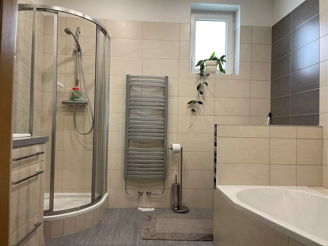 Dodatkowo jest pokój z łazienką , który ma również oddzielne wejście ( doskonały np. na biuro, lokum dla dorastającego dziecka czy rodzica ).
