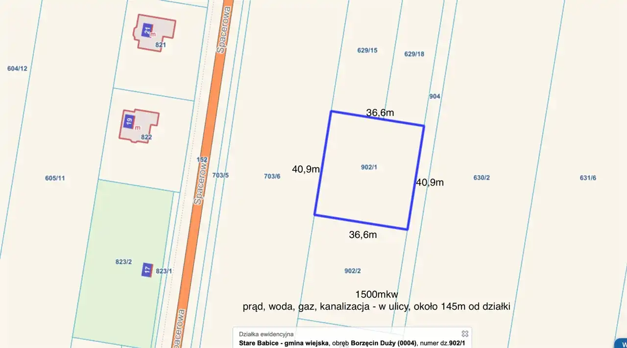 Prąd, woda, gaz i kanalizacja - w odległości około 145m