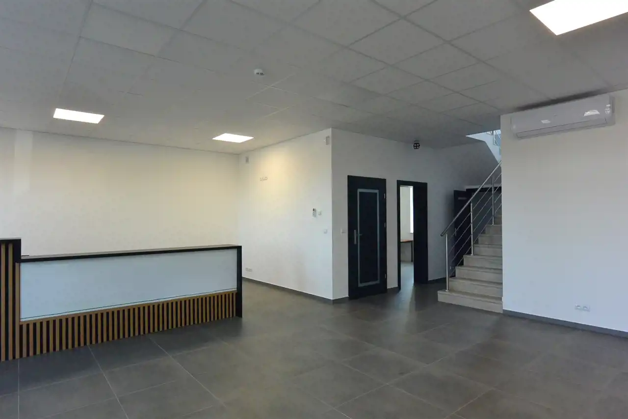 Rental price: PLN 15,000 net (PLN 18,450 gross) + utilities (electricity, waste, water) based on meter readings. Heating is provided by a heat pump. Seven parking spaces are included in the rent.