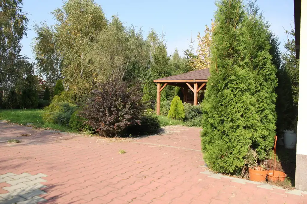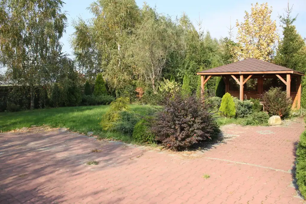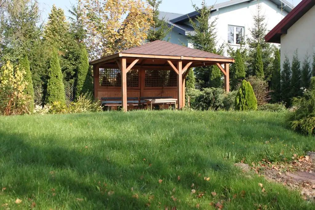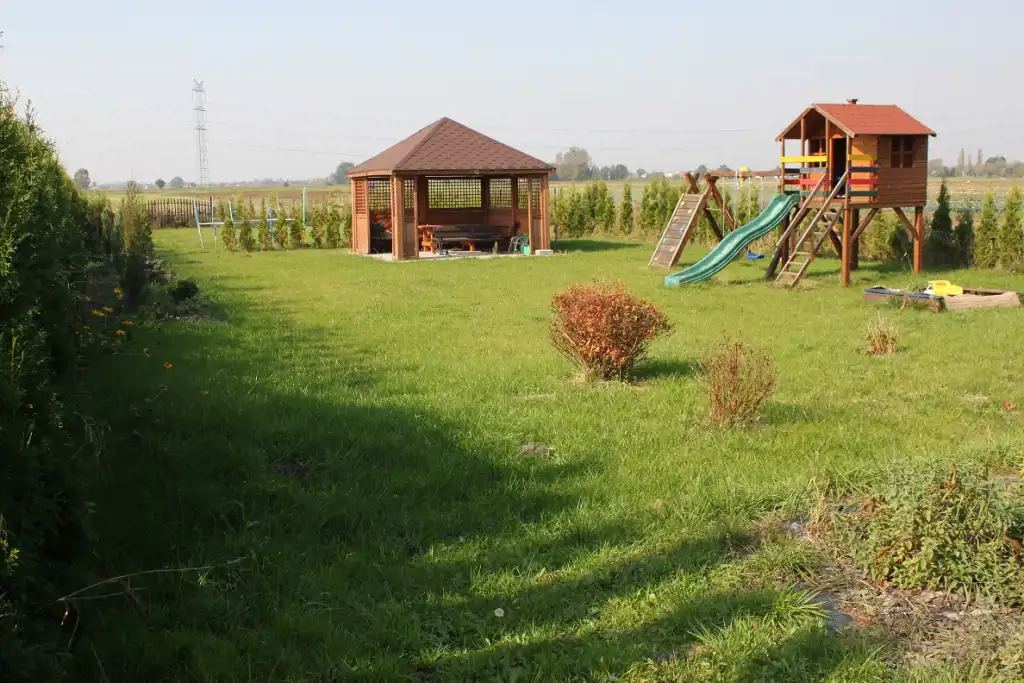 Na działce posadowione są dwie altany ogrodowe wykonane z drewna oraz drewniany plac zabaw dla dzieci.