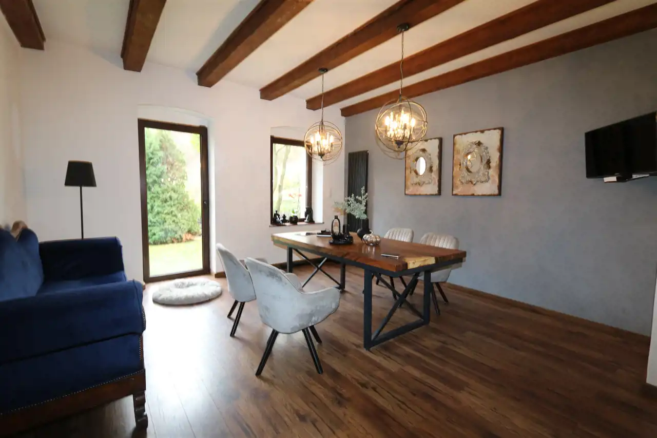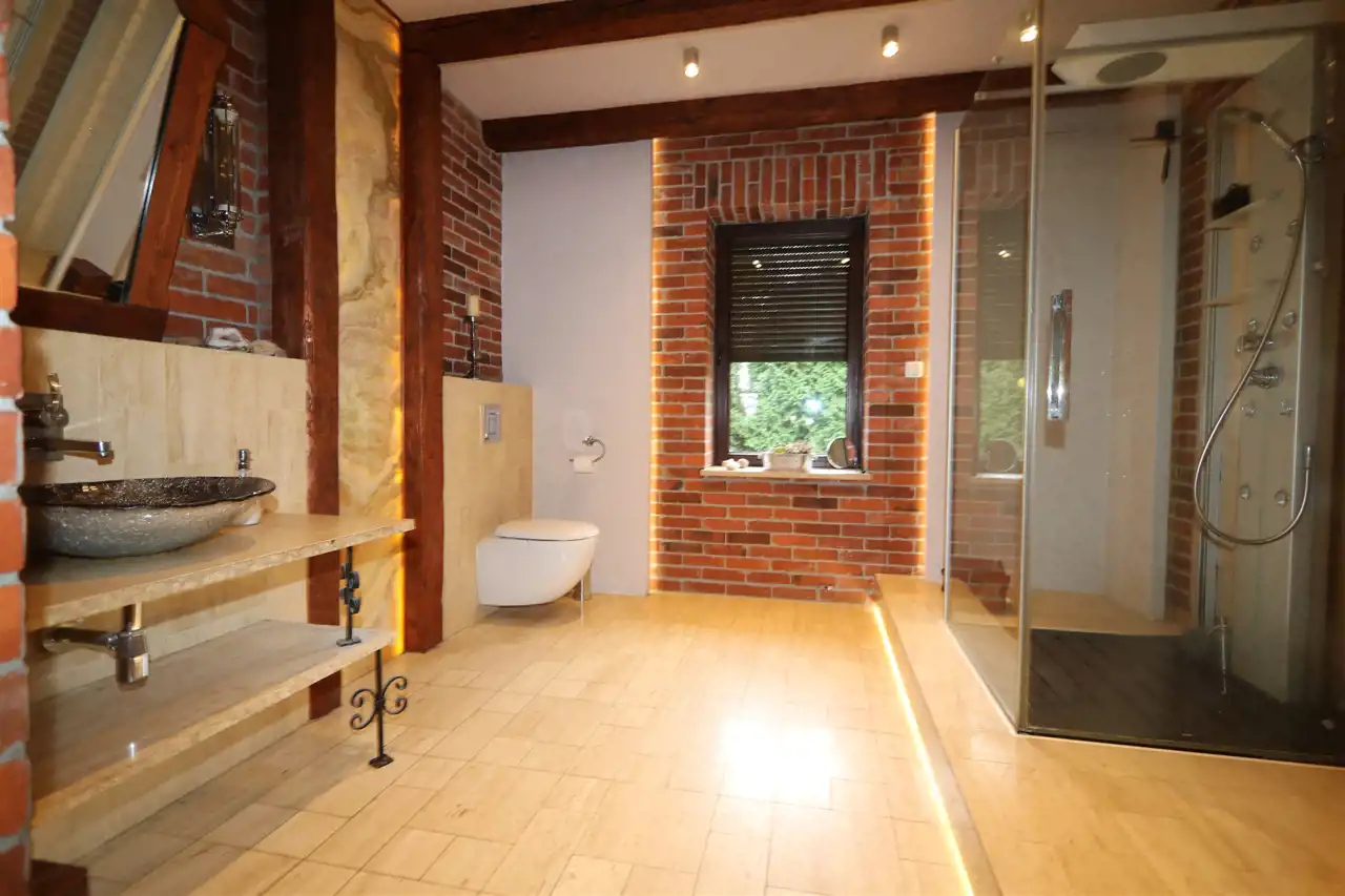 Wyremontowany budynek poniemiecki, wykonano drenaż, ocieplenie ścian, nowe pokrycie dachowe, wnętrze wykończone.