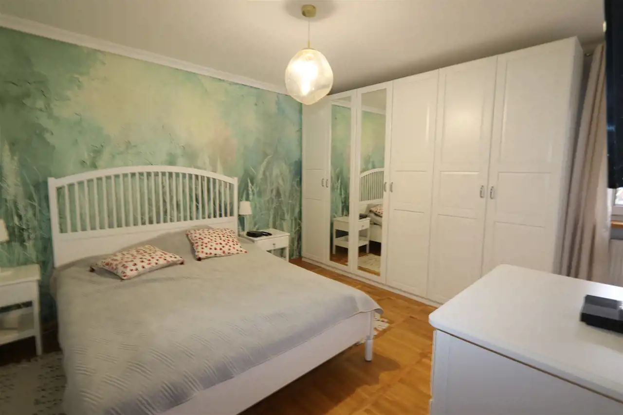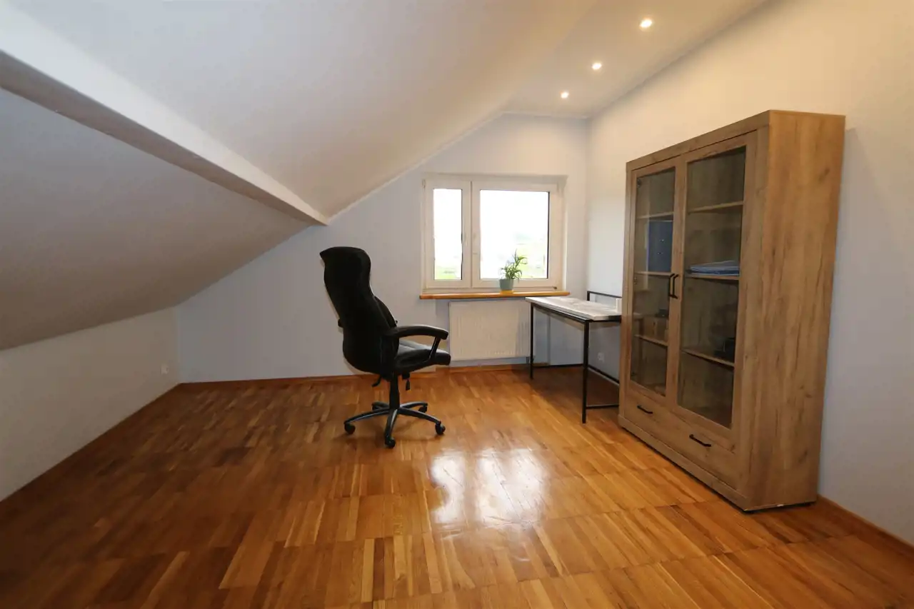 Kolejne półpiętro: dwie duże sypialnie, łazienka z wc