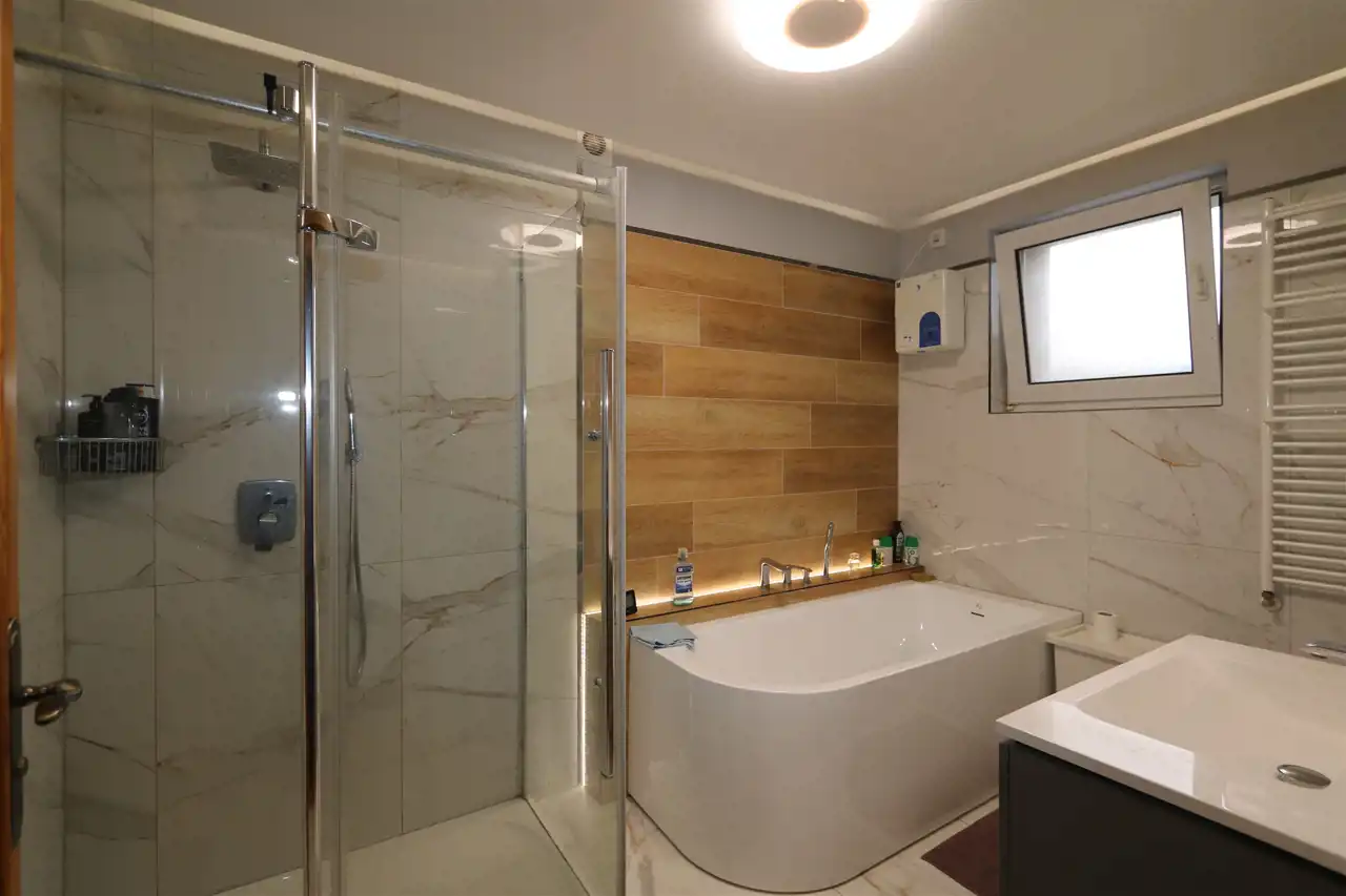 Instalacja elektryczna w miedzi, okna PCV, podłogi panele i gres, ściany gładzie.