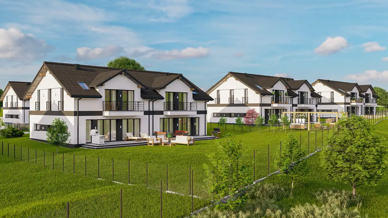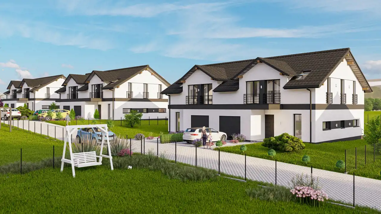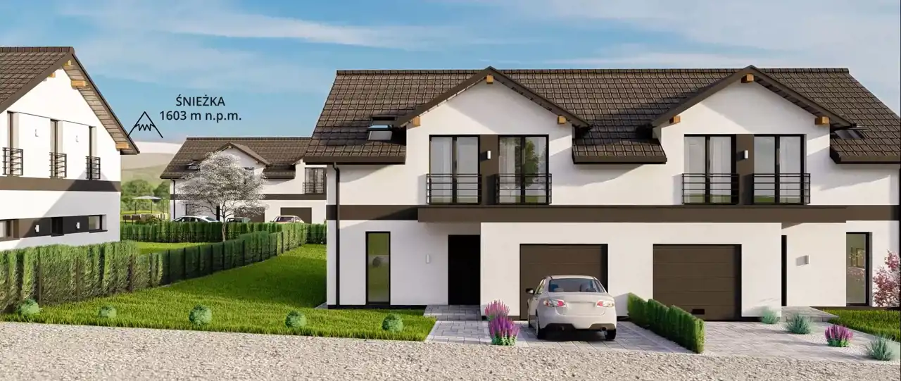 Z przyjemnością prezentujemy Państwu ofertę zakupu domu dwulokalowego w stanie surowym zamkniętym. Jest to inwestycja składająca się z 16 lokali na nowo wybudowanym osiedlu. Nieruchomość o powierzchni całkowitej 159.5m2 (użytkowa 128.5m2) znajdująca się na działce o powierzchni 500m2 – 760m2 (w zależności od segmentu) w urokliwej miejscowości Jabłów. Jest to dom jednopiętrowy (2 kondygnacje) + strych z garażem o powierzchni 21m2 w bryle budynku. W budynkach zastosowane są innowacyjne rozwiązania ekologiczne, m.in. rekuperacja, ogrzewanie podłogowe góra i dół, pompa ciepła, instalacja pod montaż paneli fotowoltaicznych.