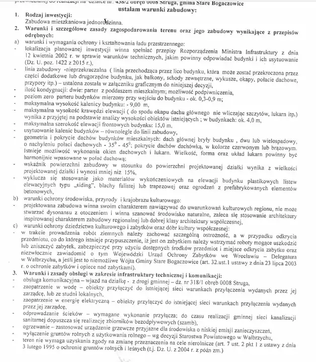 Na tym terenie nie występuję plan zagospodarowania przestrzennego. Warunki zabudowy wydane w 2017 na budowę domów jednorodzinnych.