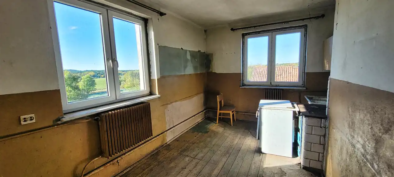 Mieszkanie o pow. 47,96 m2 na I piętrze w budynku nr 31 położonym przy ul. Długiej w Starych Juchach. Lokal składa się z 2 pokoi, kuchni, łazienki z wc oraz przedpokoju. Budynek mieszkalny 4-lokalowy jest z lat przedwojennych. Mieszkanie do generalnego remontu, z pięknym widokiem na okoliczne tereny, w sąsiedztwie mały zbiornik wodny. Wraz z lokalem sprzedawane jest pomieszczenie w budynku gospodarczym. W odległości ok. 2 km plaża gminna nad Jeziorem Jędzelewo.