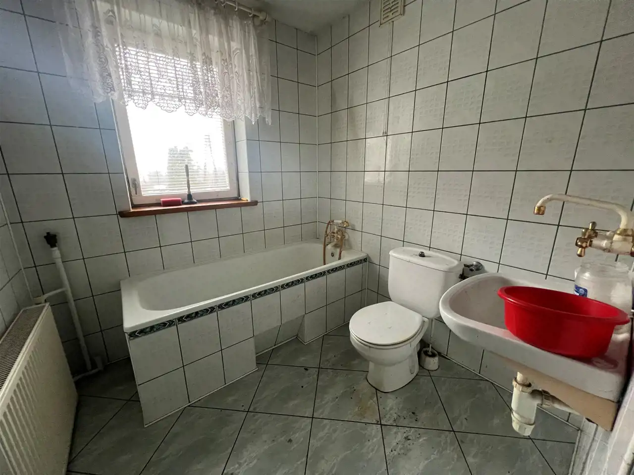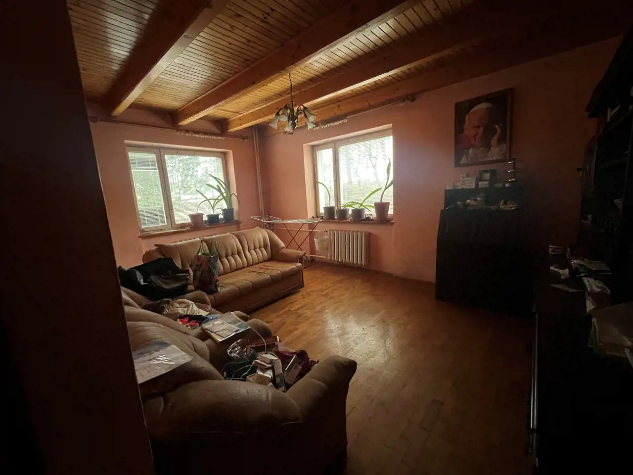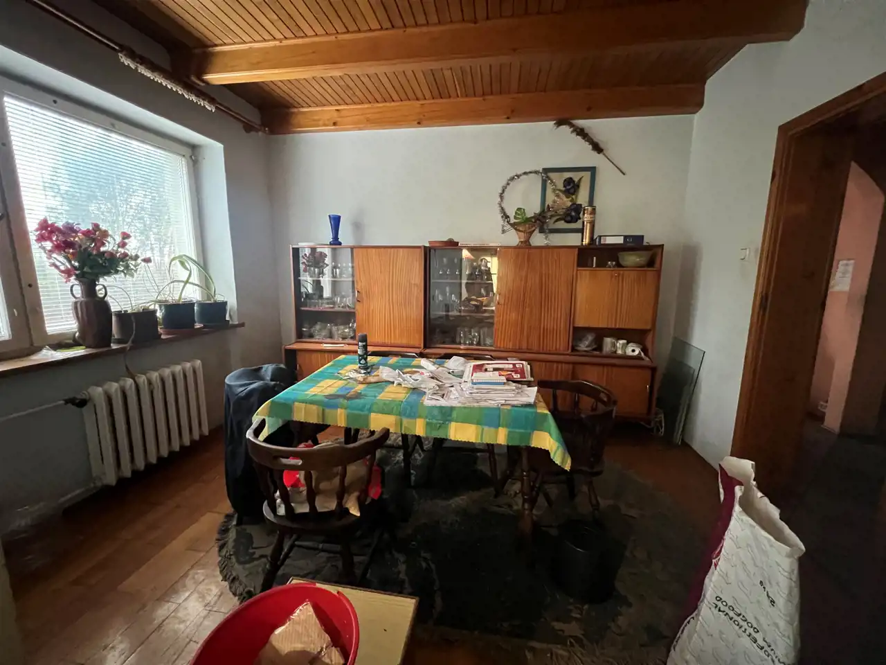Na posesji znajduje się dom mieszkalny o powierzchni zabudowy 196 m2 dwukondygnacyjny, podpiwniczony. Parter domu stanowi holl z wygodnym miejscem do przechowywania odzieży wierzchniej, wygodna i funkcjonalna kuchnia w sąsiedztwie której znajduje się przestronna jadalnia oraz dwa pokoje i łazienka wyposażona w wannę oraz odrębna toaleta, a całość parteru uzupełnia bardzo przestronny korytarz. Na piętrze natomiast znajdują się trzy pokoje, garderoba i druga łazienka w glazurze i terakocie wyposażona w wannę. Wszystkie pomieszczenia są jasne, przestronne z dużą ilością naturalnego światła. Budynek ogrzewany jest przez piec na paliwo stałe znajdujący się w piwnicy. Na posesji znajduje się także murowany garaż na jeden samochód o powierzchni zabudowy 42 m2 oraz dwa murowane budynki gospodarcze o powierzchni zabudowy 101 m2 oraz 50 m2, które wiele lat temu pełniły funkcję mieszkalną z piecami kaflowymi.