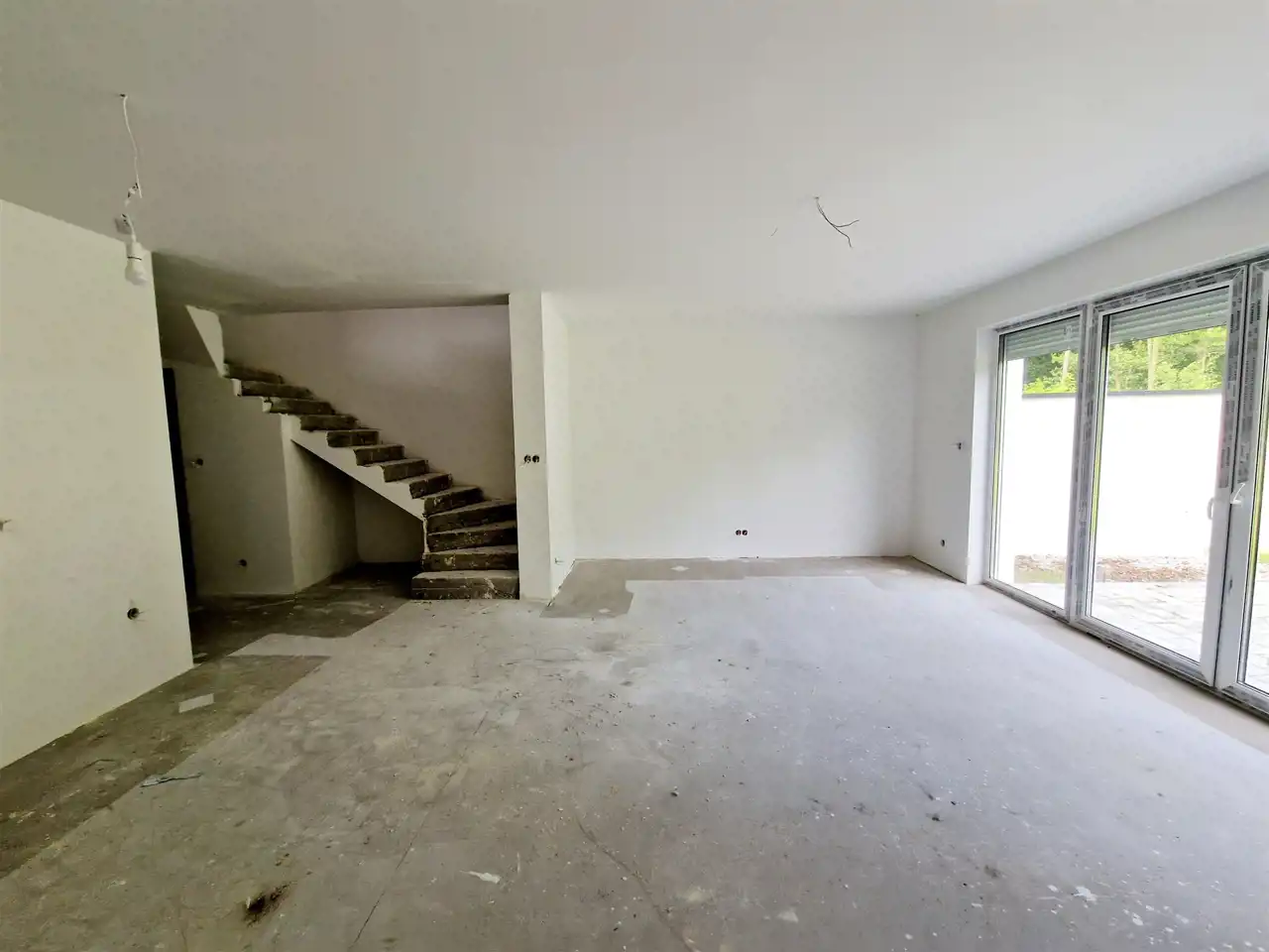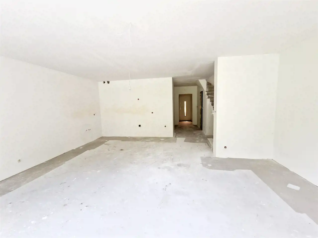 tynki gipsowe, posadzki cementowe, poddasze wykończone płytami g-k.