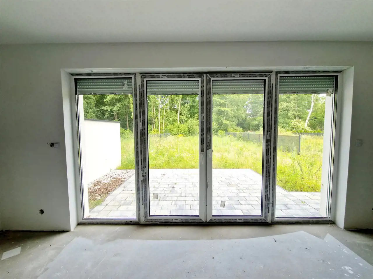 okna trzyszybowe z roletami zewnętrznymi sterowanymi elektrycznie,
