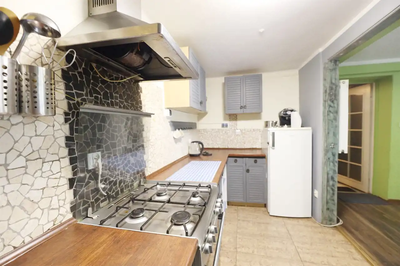 - Dom z ogrzewaniem gazowym (piec jednobiegowy), z możliwością instalacji pieca na paliwa stałe.
