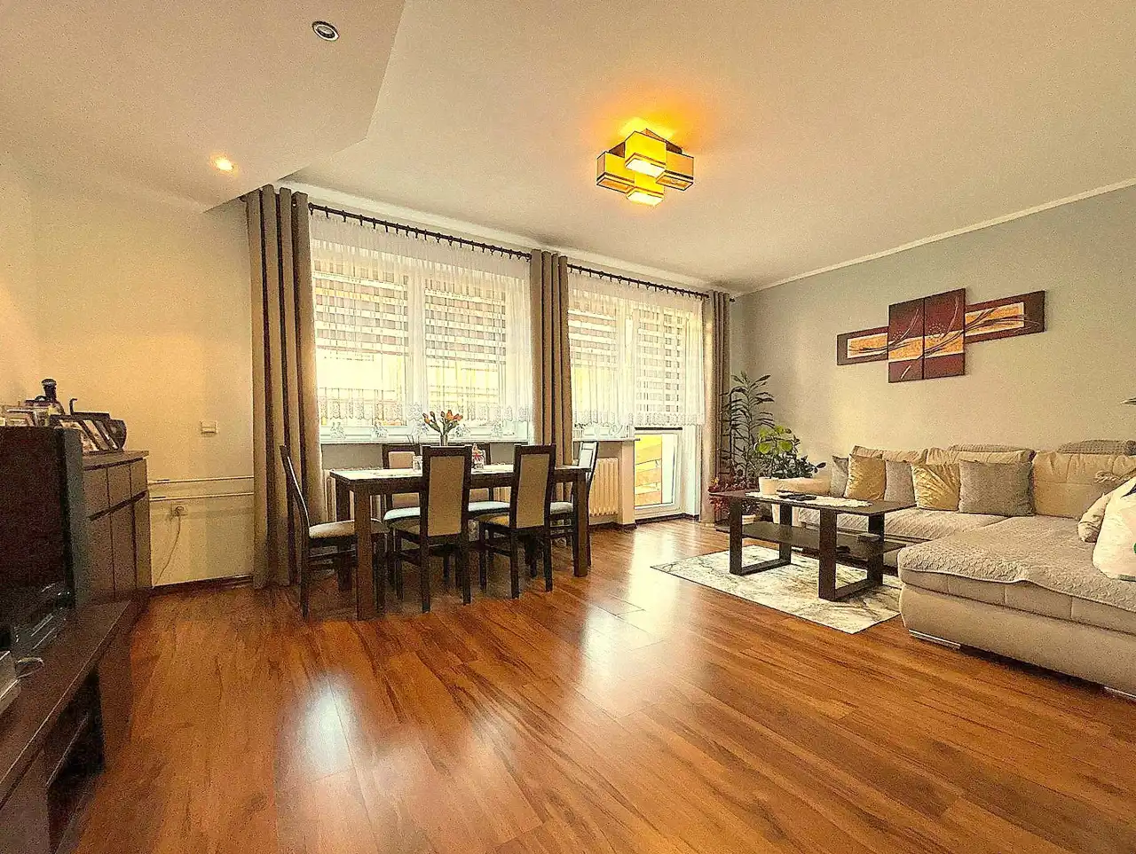 przestronny, dobrze doświetlony salon