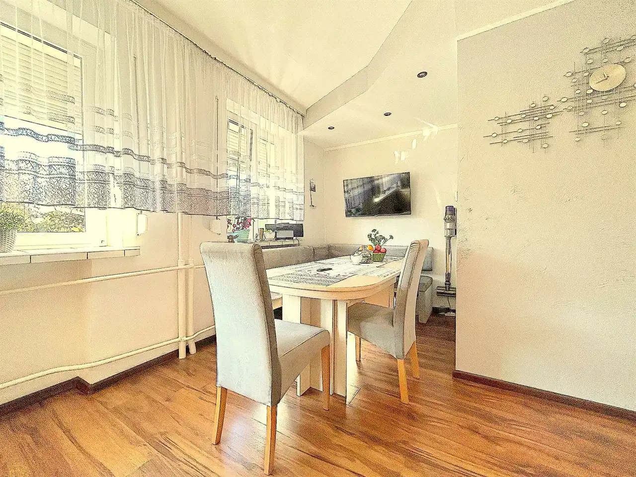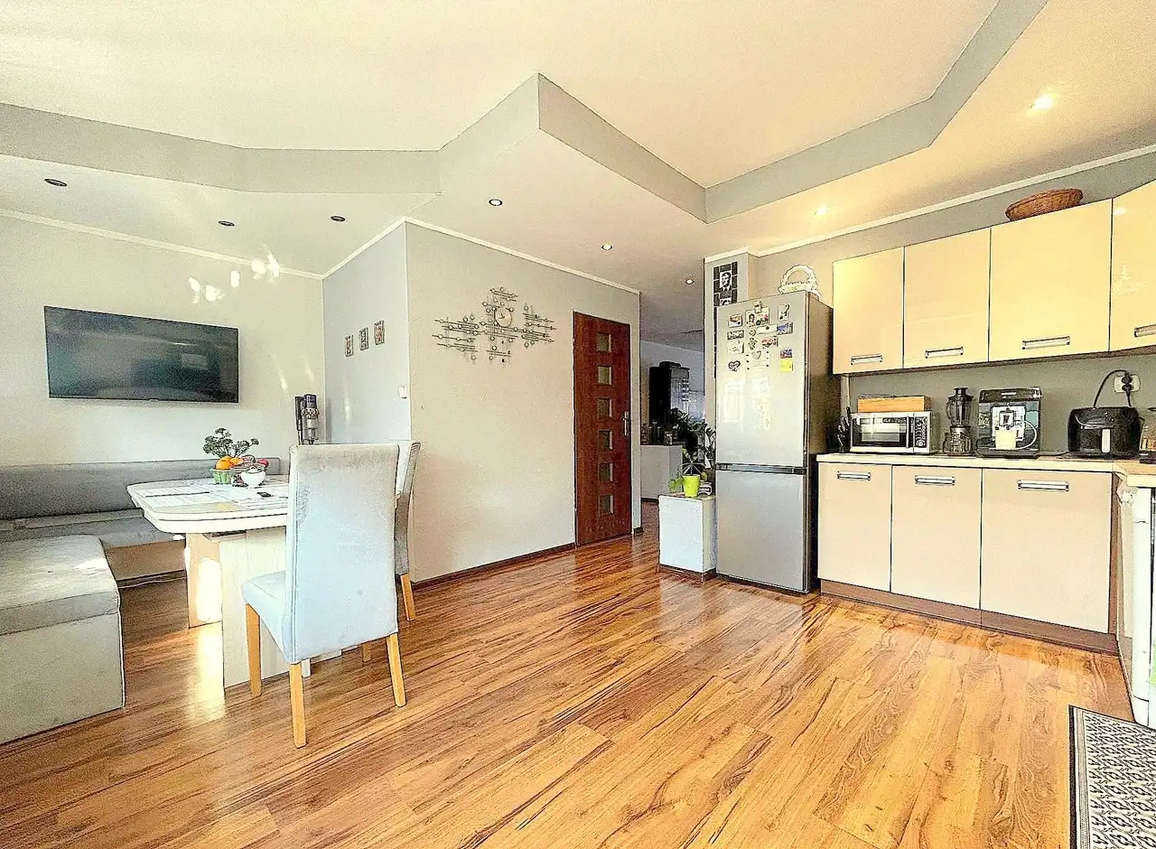 Dom jest zadbany, po remoncie, gotowy do wprowadzenia bez dodatkowych nakładów. Jasne wnętrza i przemyślany układ pomieszczeń tworzą przestrzeń idealną dla rodziny lub osób pracujących z domu.
