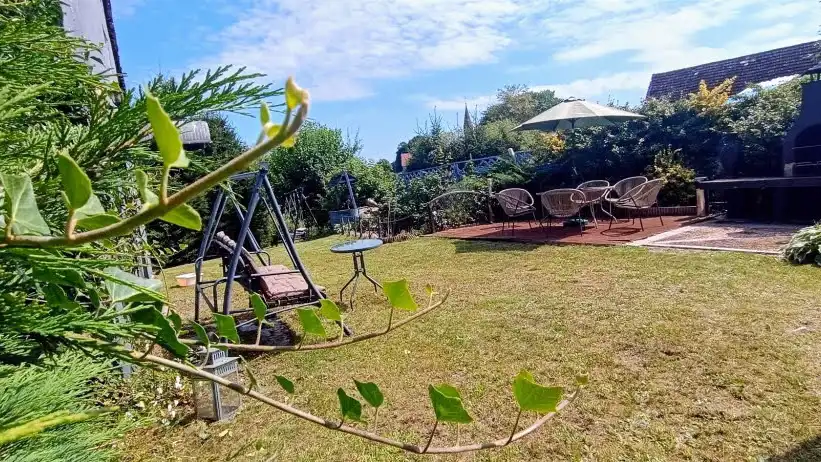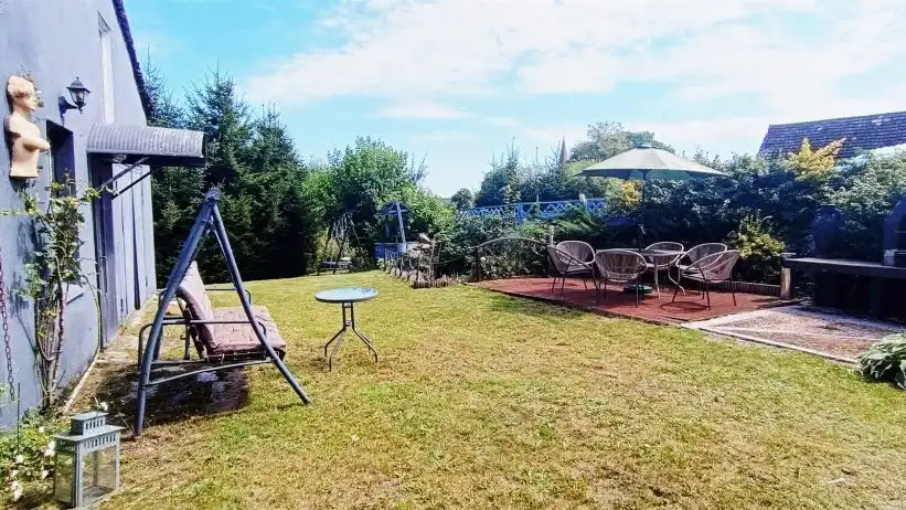 Na sprzedaż większa część bliźniaka, o powierzchni użytkowej około 126 m2. W skład nieruchomości wchodzą, 4 pokoje, kuchnia, łazienka oraz przedpokój. Na piętrze znajduje się poddasze użytkowe, które można zaadoptować wdł, własnego uznania. Nieruchomość położona jest na działce pow. 500 m2, na której znajduje się warsztat, garaż jednostanowiskowy, oczko wodne oraz strefa do odpoczynku. Ogrzewanie jest na piec węglowy, woda miejska.