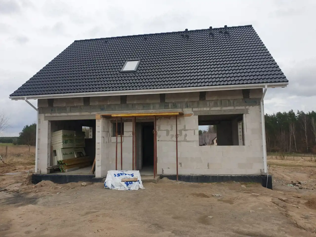 W cenie zamontowane okna, drzwi wejściowe ,okna dachowe , szambo szczelne, ocieplenie , tynk zewnętrzny.