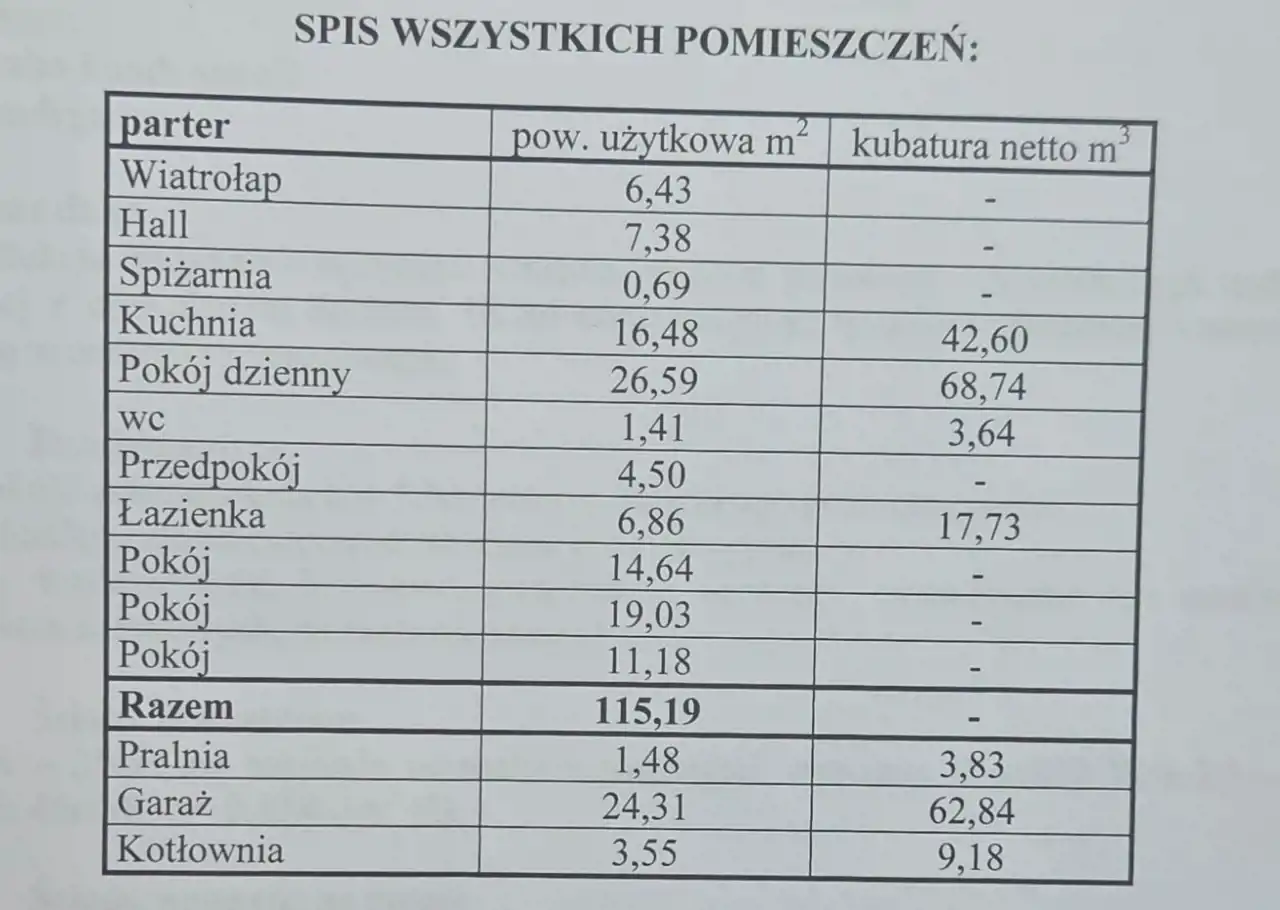 -Powierzchnia całkowita (z garażem i kotłownią): ok. 143 m²
